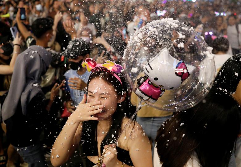 People release balloons as they gather to celebrate New Year's Eve, amid the coronavirus COVID outbreak, in Wuhan, Hubei province, China. Reuters