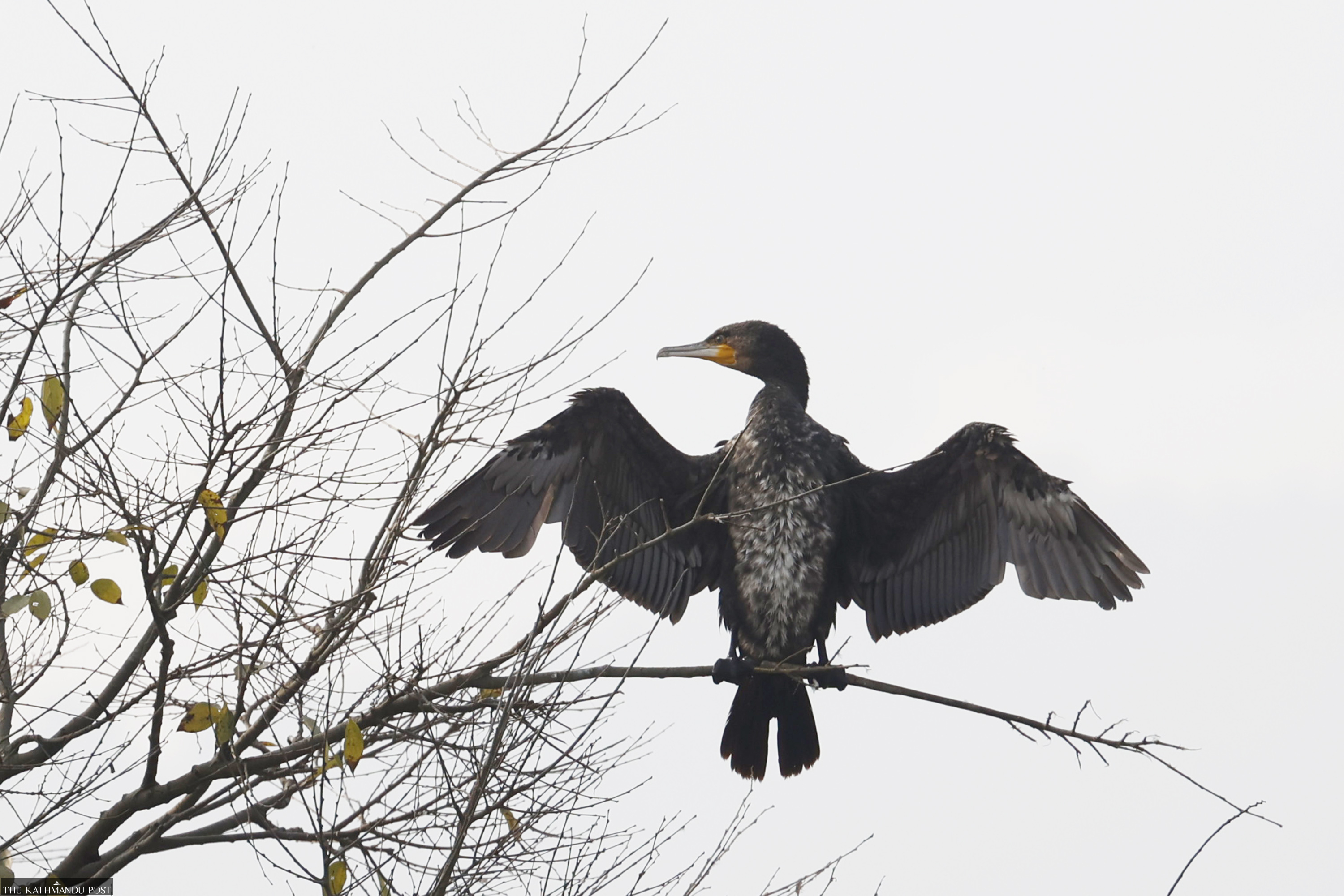 A great cormorant spreads its wings at Taudaha on the outskirts of Kathmandu. Known as jalewa in Nepal, the bird is one of the widest-spread fish-eating species on earth. The bird is found in Asia, Europe, Africa, Oceania and North America as both resident and migratory. Sanjog Manandhar/TKP