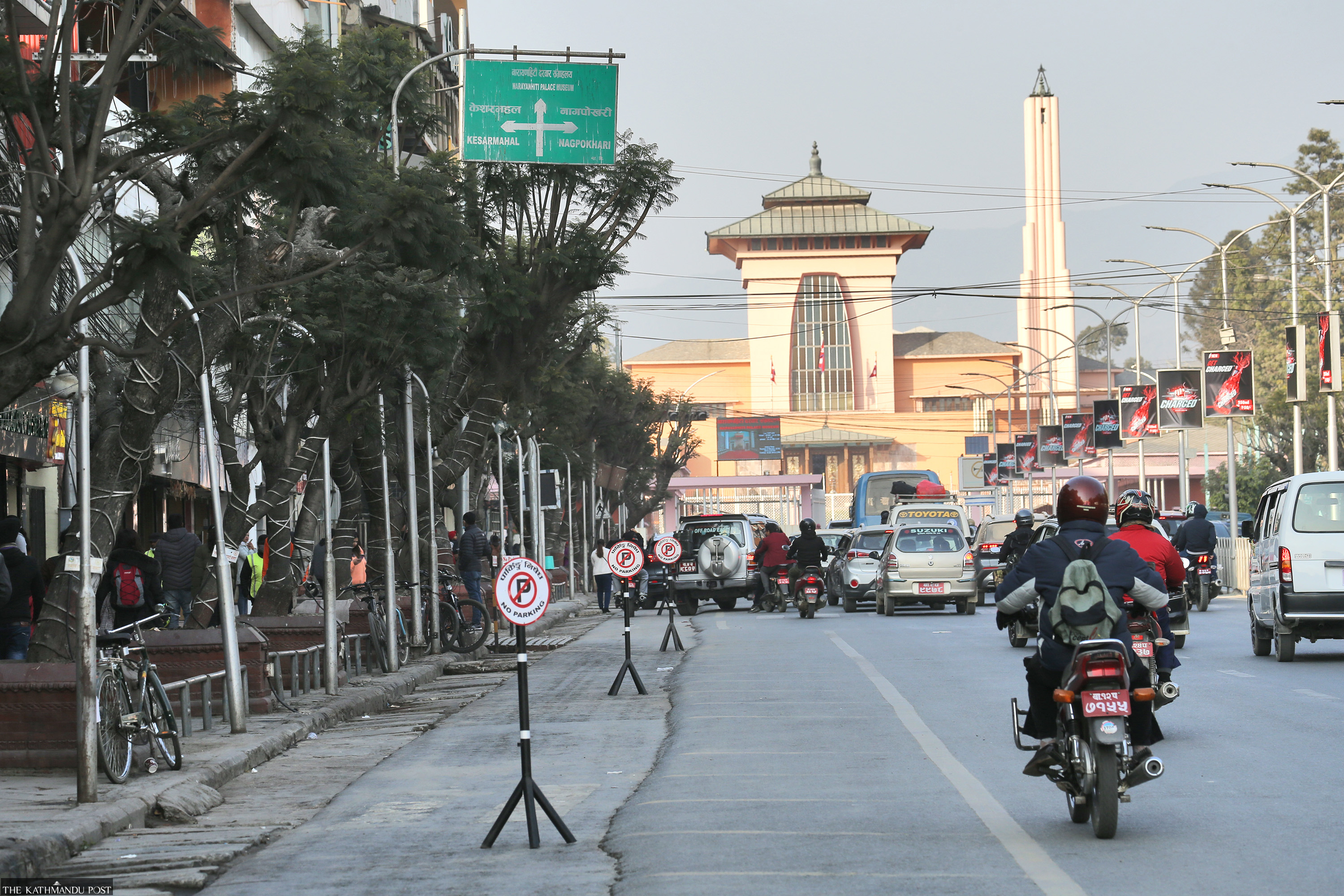 A view of Durbarmarg on Thursday after Kathmandu Metropolitan City, in coordination with traffic police, banned roadside parking there. Sanjog Manandhar/TKP