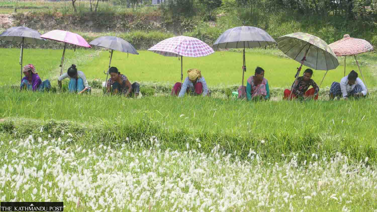 Women farmers uproot rice seedlings for transplantation in Rajapur Municipality-1, Bardiya on Tuesday. Kamal Panthi/TKP