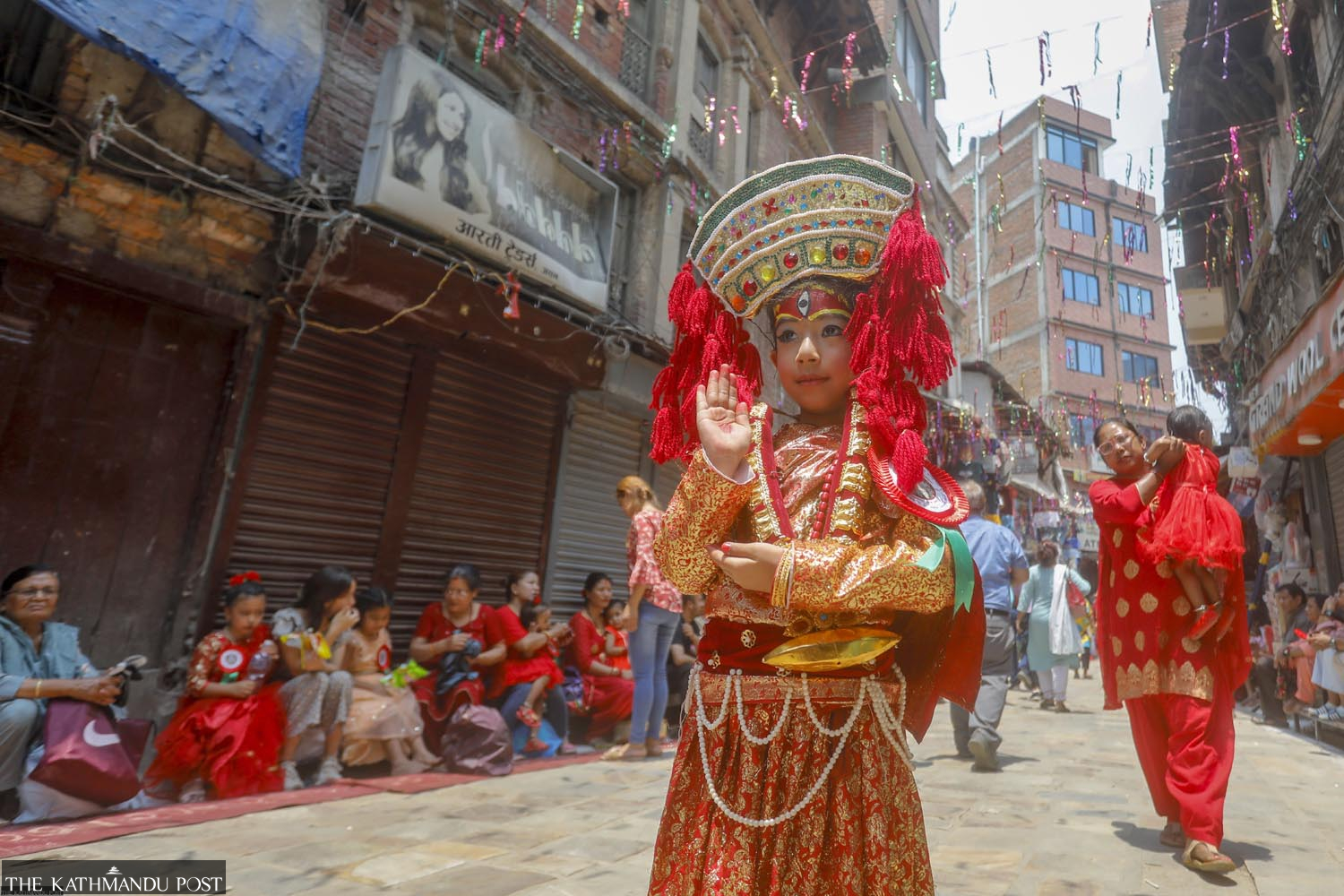 A girl dressed as Kumari for the Shree Balkumari Puja pictured at Ason in Kathmandu on Saturday. Elite Joshi/TKP
