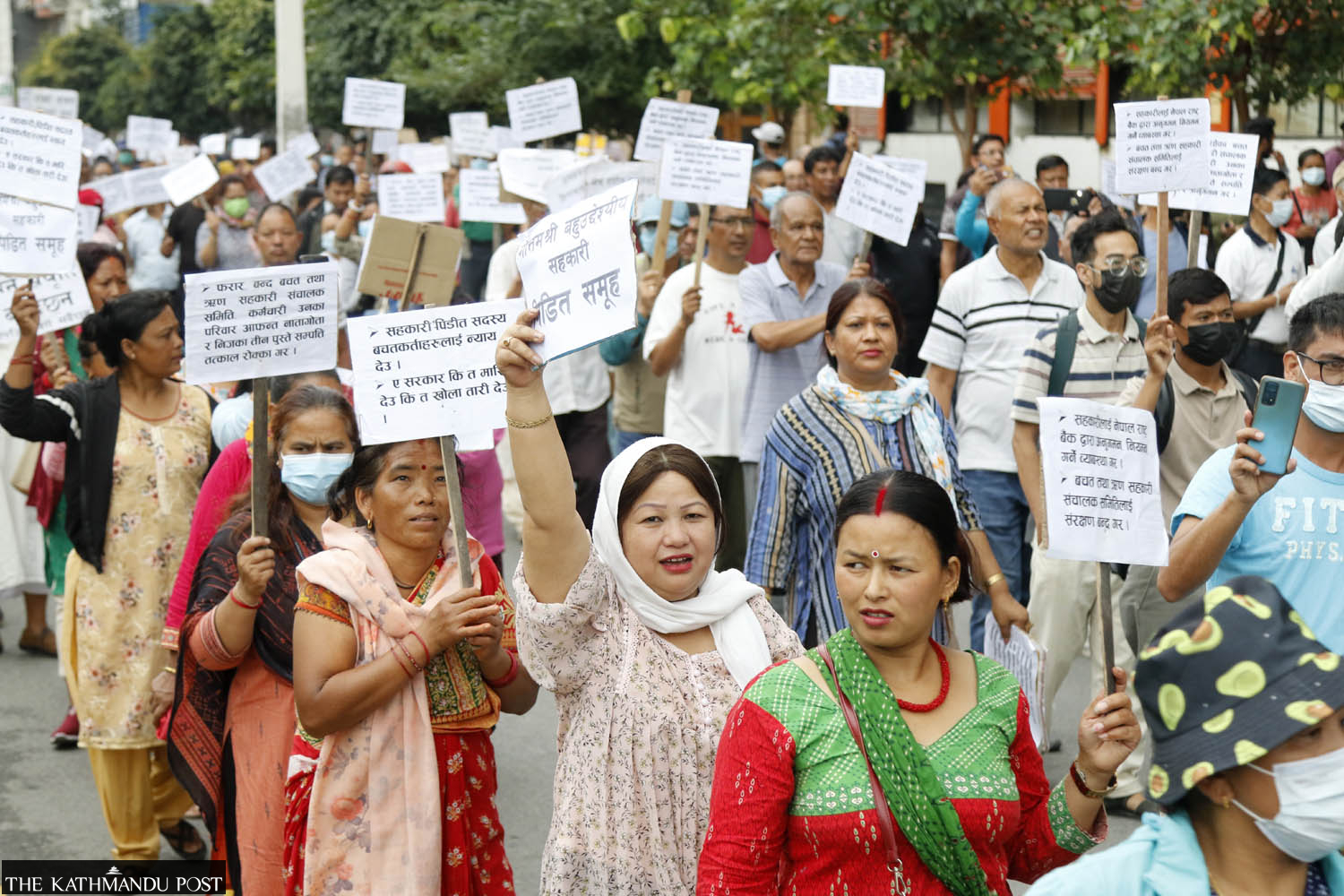 Depositors of cooperative banking march in Kathmandu on Sunday against the operators who have misappropriated their savings. Keshav Thapa/TKP