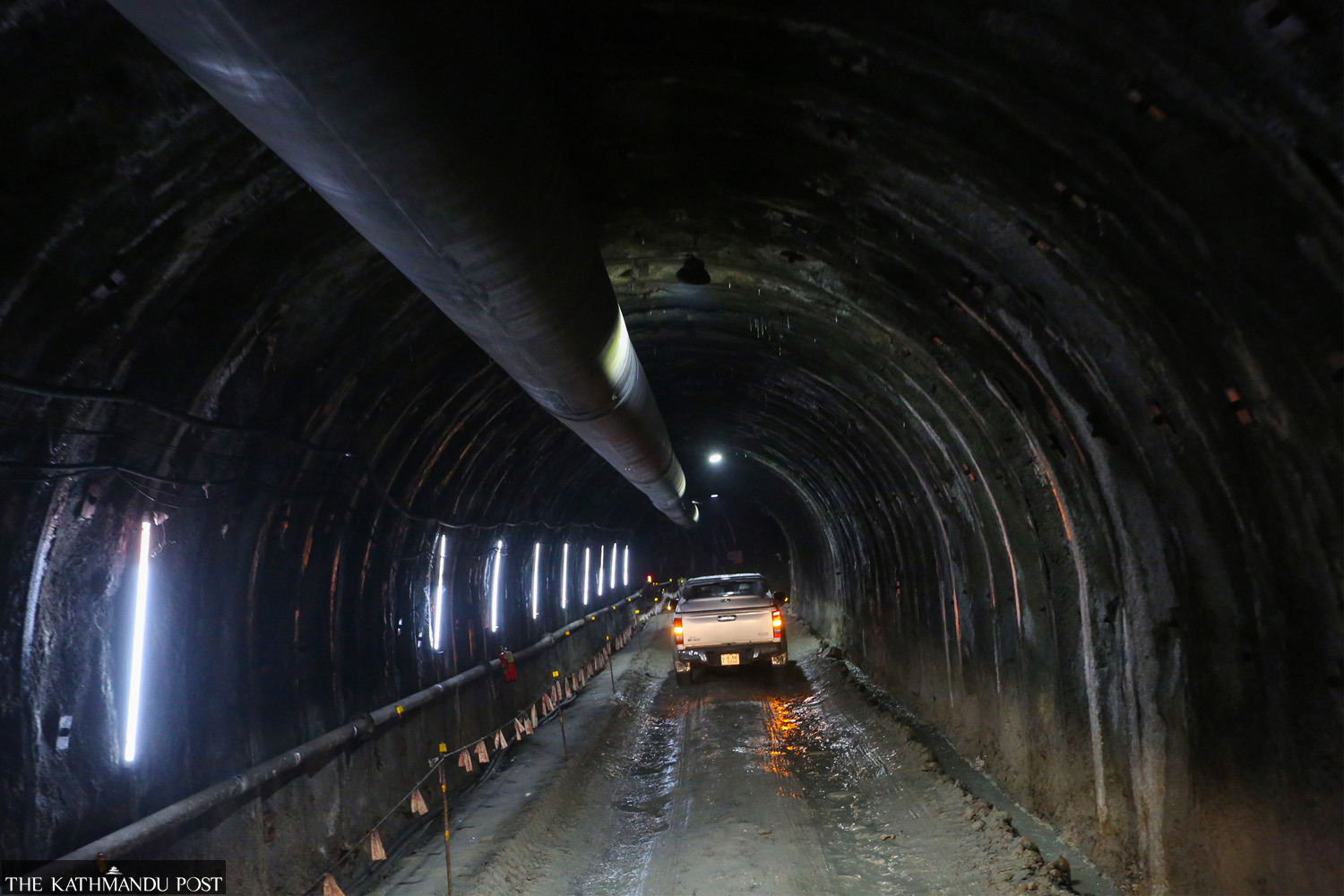 A part of the Nagdhunga-Sisne Khola road tunnel on the Valley’s rim pictured on Tuesday. Officials expect a breakthrough in the next four months. Prakash Chandra Timilsena/TKP