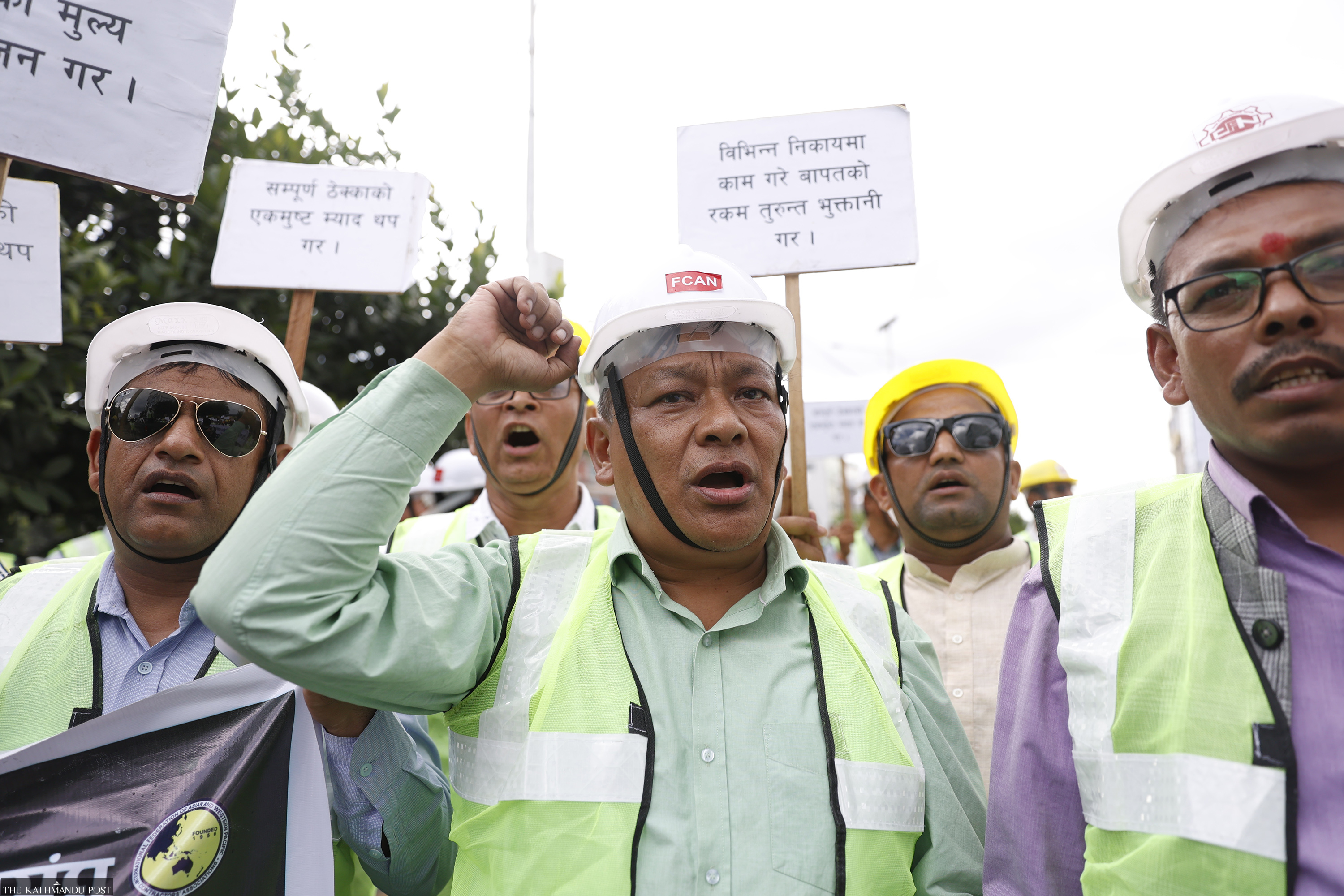 Private sector contractors stage a demonstration at New Baneshwar, Kathmandu, on Monday demanding that the government release the payments for completed works without delay. Sanjog Manandhar/TKP