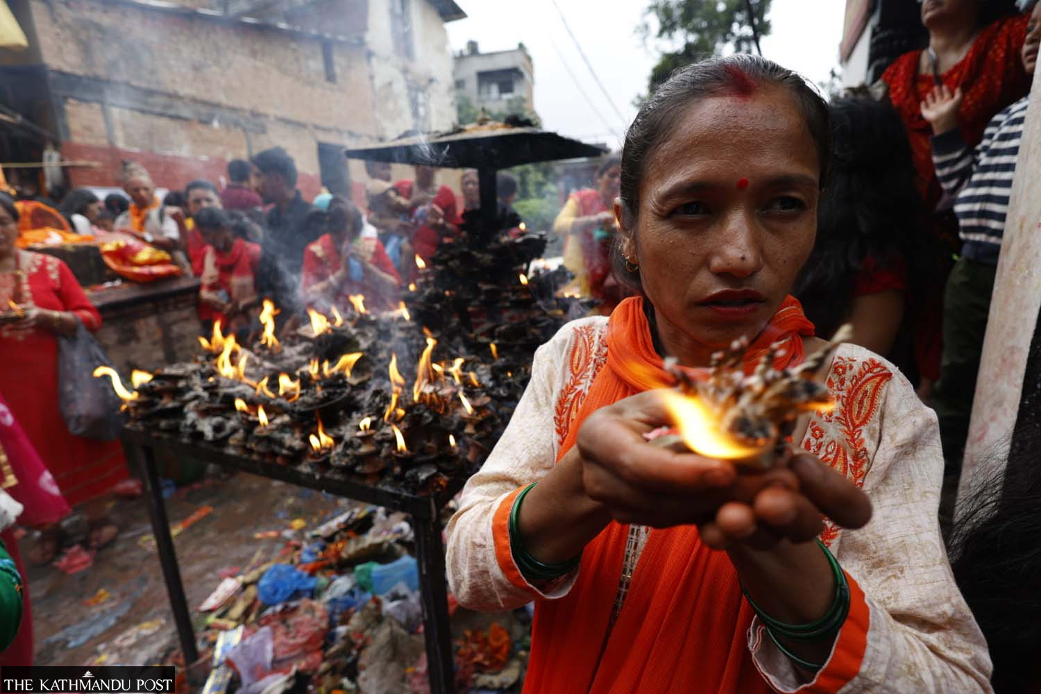 Devotees offer prayers at Machchhenarayan Temple during the Machchhenarayan Mela in Kirtipur, Kathmandu, on Saturday. Sanjog Manandhar/TKP