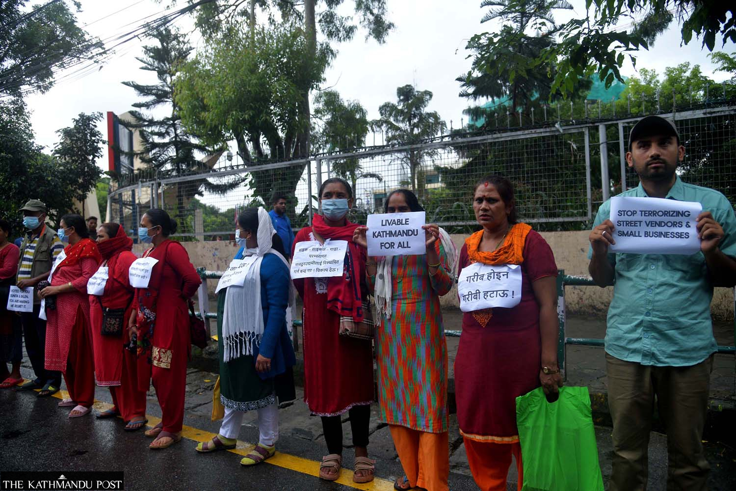 People demonstrate outside City Hall in Kathmandu on Saturday against the metropolis forcefully removing vendors as it implements a ban on street business. Deepak KC/TKP