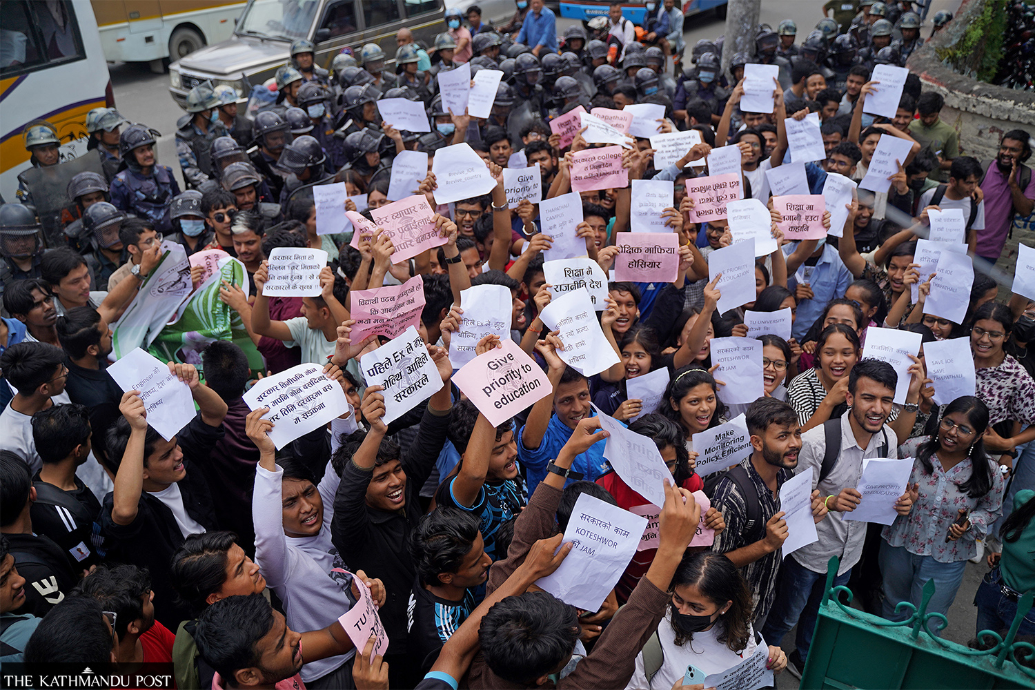 Students of the Institute of Engineering’s Thapathali Campus in Kathmandu stage a demonstration against alleged attempts by the college administration to hike tuition fees of various bachelor’s level engineering courses by 140 percent. They also demanded that the college be moved to a peaceful location, among other things. Angad Dhakal/TKP