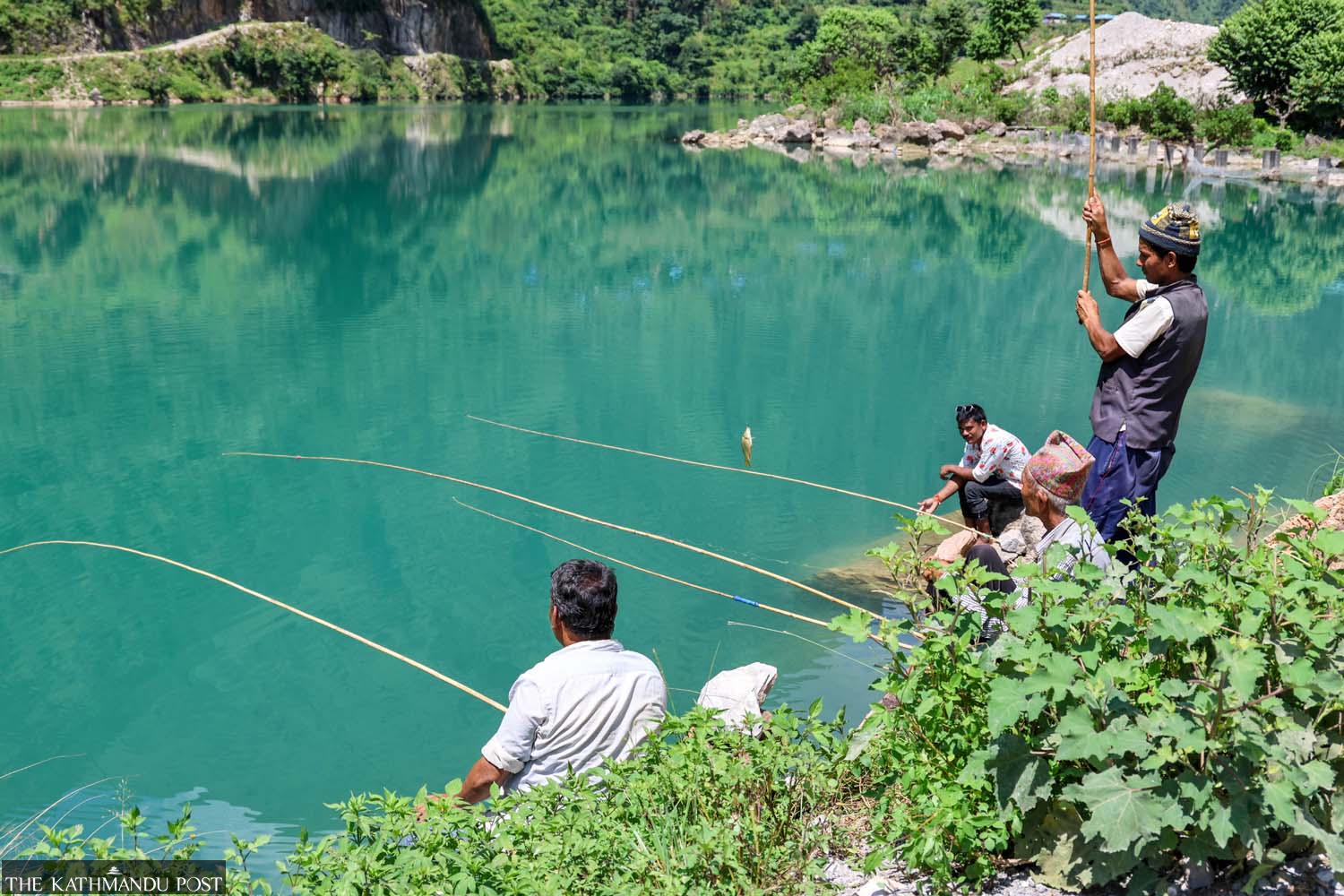Men fish in the Syapu lake in Rukum West recently. Syapu, one of the largest lakes in Karnali Province, is a renowned tourist hotspot and is famous for its fish. Mahesh KC/TKP