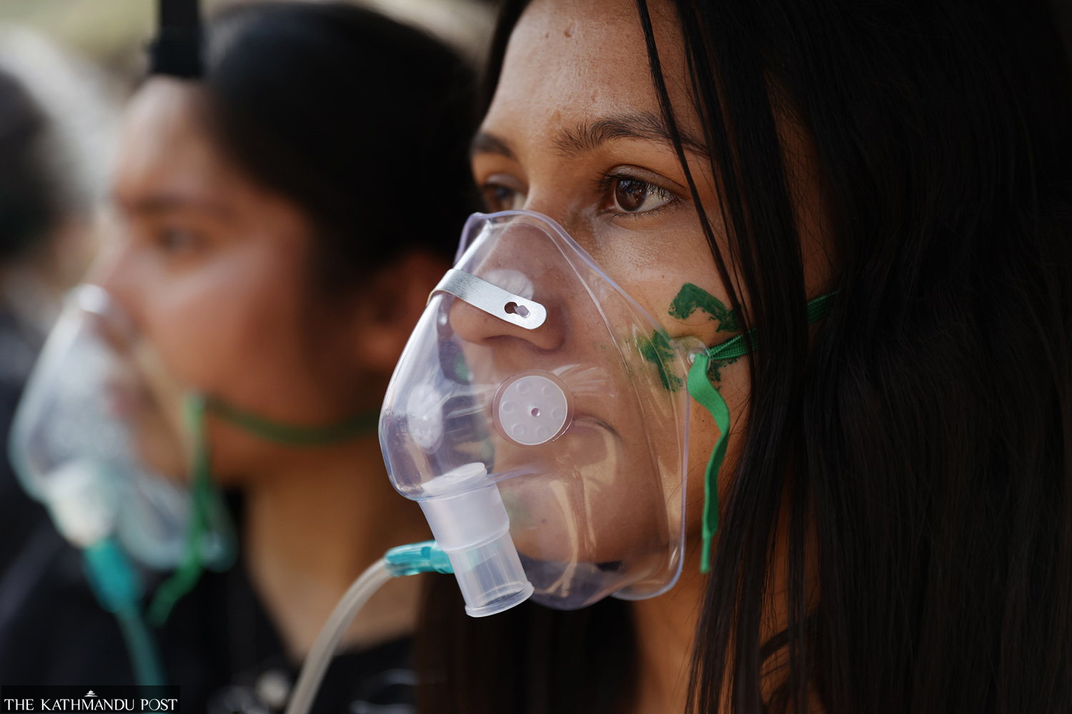 Activists wearing oxygen masks demonstrate on the occasion of the International Day of Clean Air, in Lalitpur on Thursday. Sanjog Manandhar/TKP
