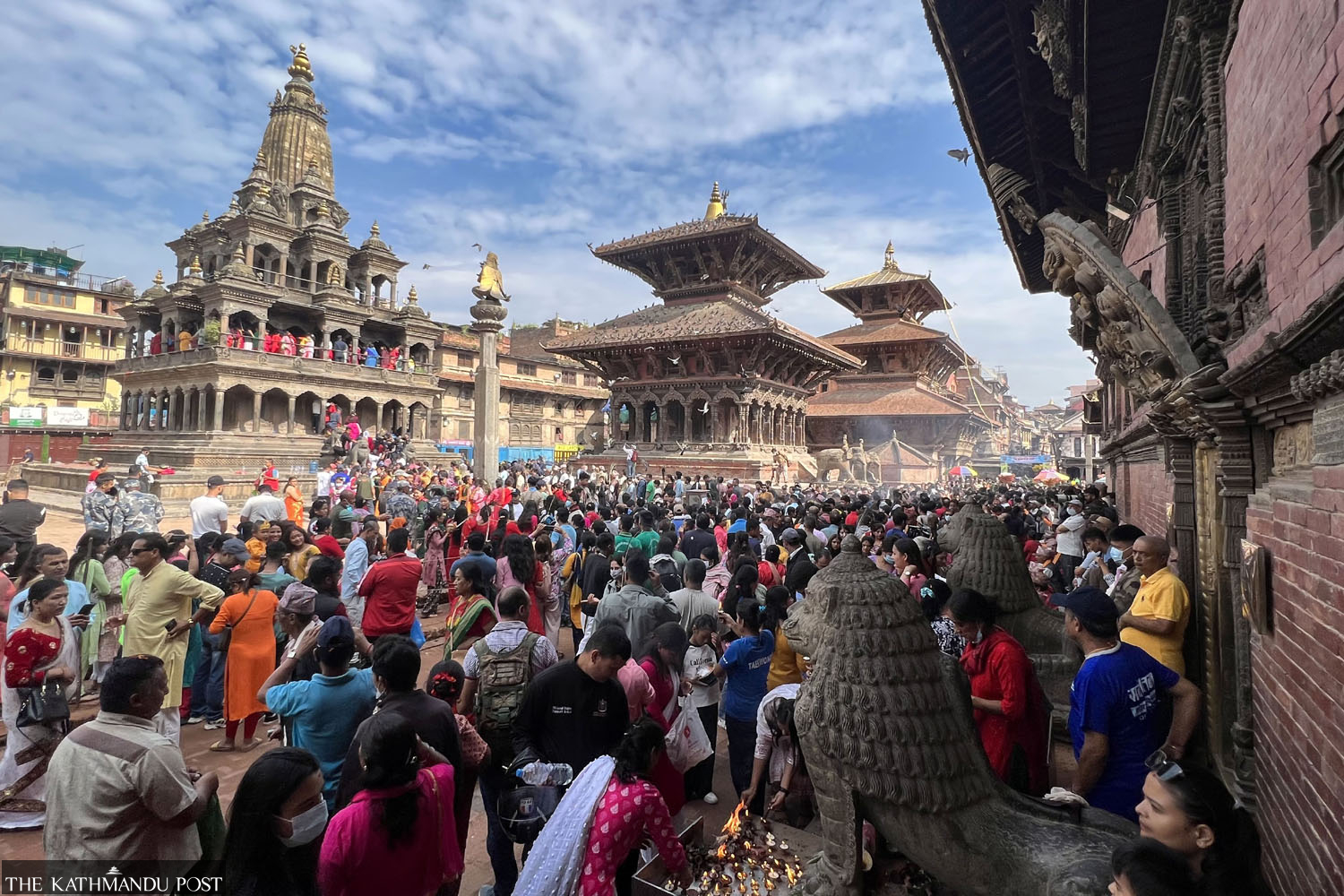 Krishna Mandir at Patan in Lalitpur teems with Hindu devotees on the occasion of Krishna Janmashtami on Wednesday. Elite Joshi/TKP