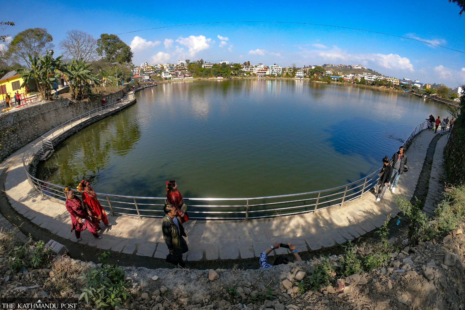 Visitors take a stroll around Taudaha lake on the outskirts of Kathmandu on Saturday. Deepak KC/TKP