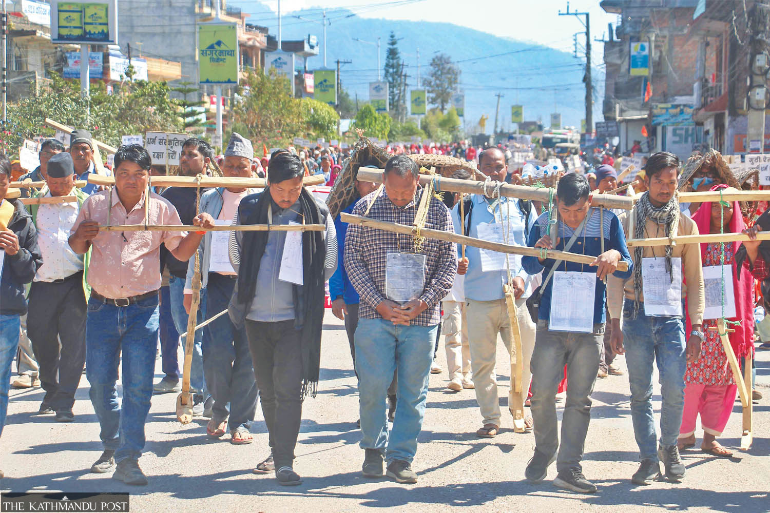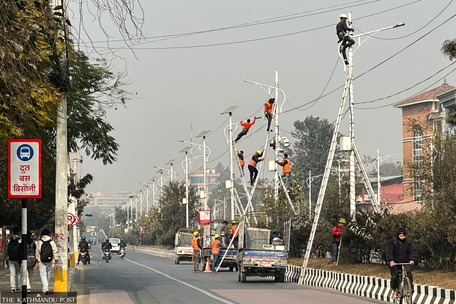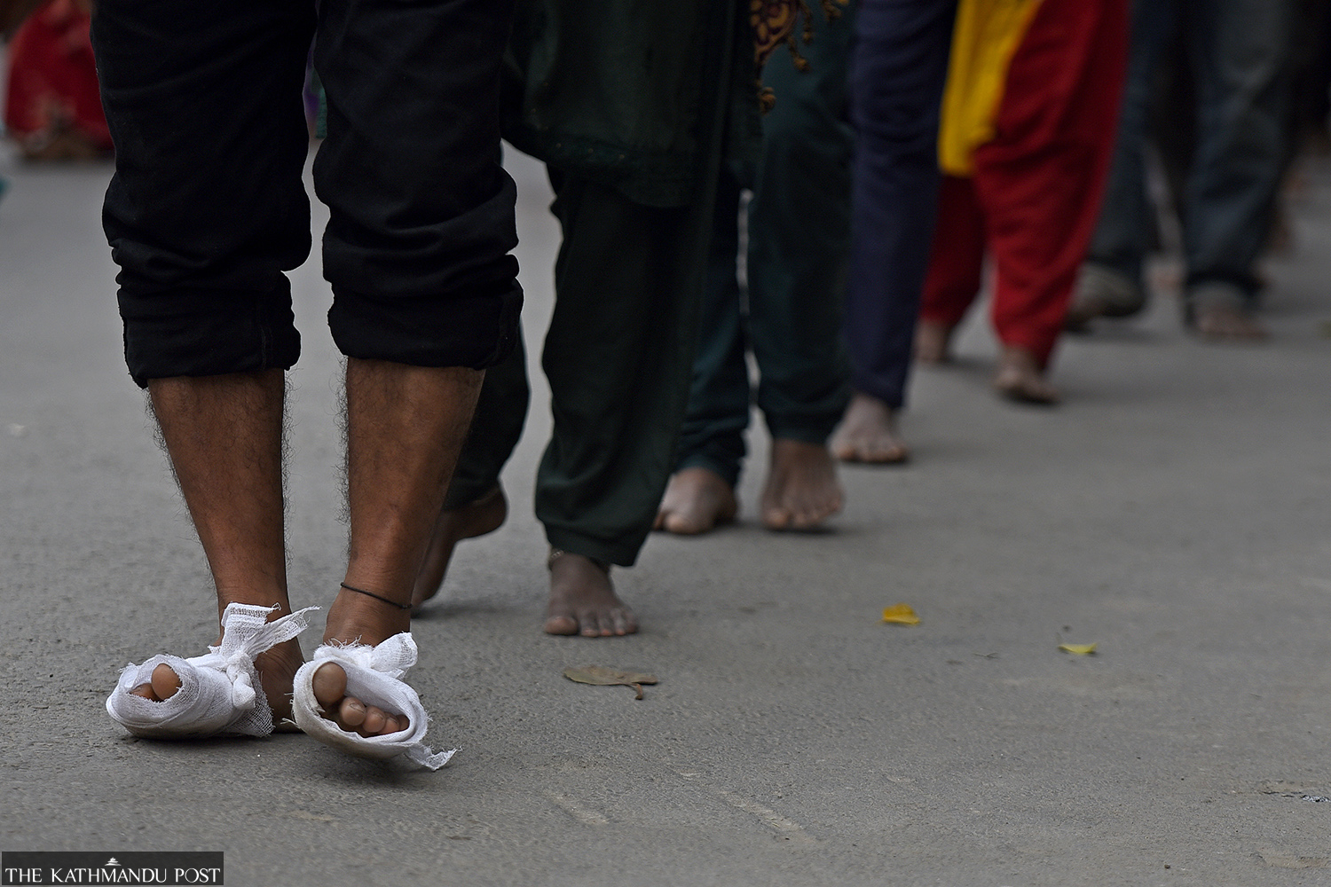 A tourist takes pictures of Krishna Mandir at Patan Durbar Square in Lalitpur on Saturday. Deepak KC/TKPWorkers are seen cleaning up solar panels that power street lights at Babarmahal, Kathmandu in this recent photo. Hemanta Shrestha/TKPBorrowers from microfinance companies on Monday chant slogans on the premises of the federal Parliament at New Baneshwar after breaching police barricades. They accuse the companies of charging exorbitant interests. Post PhotoVictims of usurious lending practices walk barefoot demanding justice in Kathmandu on Tuesday. Having walked for weeks, many have developed sores on their feet. Angad Dhakal/TKPA woman walks on the road at New Baneshwar in Kathmandu on Tuesday. After borrowers of microfinance institutions barged into the federal parliament premises on Monday, the administration responded by barring pedestrians on the pavements adjoining the International Convention Centre that houses Parliament. Angad Dhakal/TKPShepherds take their sheep out to graze at Gaidahawa in Maharajgunj Municipality of Kapilvastu district in this recent photo. Manoj Poudel/TKPA supporter of the Rajendra Mahato-led Rastriya Mukti Kranti Abhiyan, a new political campaign, stages protest against the government by lying on the road at Bhadrakali in Kathmandu on Wednesday demanding that the famous roundabout of Maitighar Mandala be opened for public protests. Angad Dhakal/TKP In a symbolic protest, farmers in Ghorahi harnessed themselves to ploughs and took to the streets on Thursday to put pressure on the government for resolving their old land ownership issue. Durga Lal KC/TKP