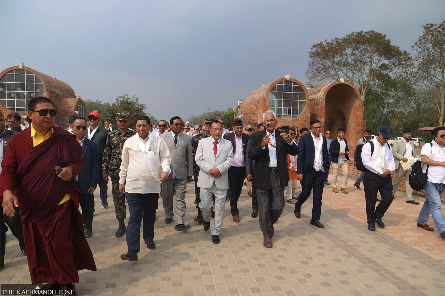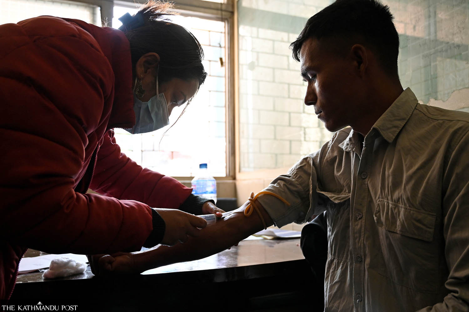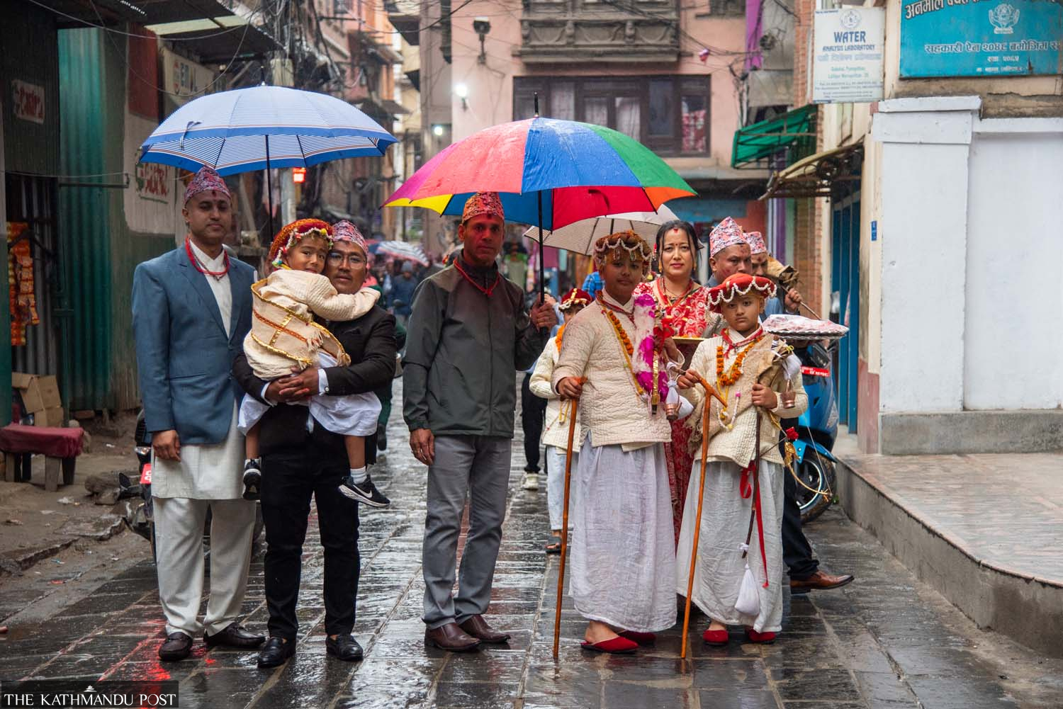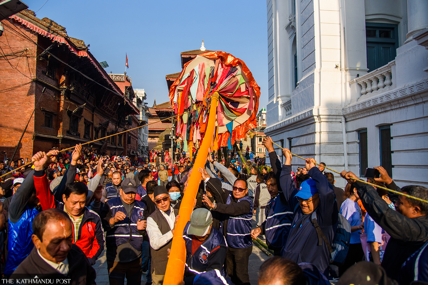 A man pushes his vegetable cart during rain at Dhapagal in Lalitpur on Wednesday. Sukarya Lal Shrestha/TKPDevotees erect a bamboo pole called ‘chir’ to mark the beginning of Holi celebrations, at Basantapur in Kathmandu on Sunday. Sukarya Lal Shrestha/TKPWork on a flyover continues between two bustling road lanes at the Gwarko intersection of the Ring Road in Lalitpur, as pictured on Tuesday.The tall structure is a tower crane. Officials say 40 percent of the work on the project has been completed in 13 months. Hemanta Shrestha/TKPA kin of a Nepali youth suspected to have died while fighting for Russia against Ukraine has his blood sample taken for DNA matching, at TU Teaching Hospital in Maharajgunj on Thursday. Moscow had sought DNA samples to identify the bodies of 15 Nepalis who are recent victims. Angad Dhakal/TKPPeople dressed in cultural clothing parade young boys around the Gabahal locality of Lalitpur after a Bratabandha ceremony on Thursday. Sukarya Lal Shrestha/TKPAmbassadors from 19 countries and honorary consuls of 45 countries pictured among Nepali officials including Foreign Minister Narayan Kaji Shrestha (in untucked white shirt) in Lumbini on Friday as they converge for the Lumbini Conclave jointly organised by the Ministry of Foreign Affairs and the Honorary Consular Corps Nepal. Manoj Paudel/TKPA man pushes a cycle laden with cooking gas cylinders past a woman resting at a falcha at Chyasa Hiti, Chyasal in Lalitpur on Friday. Sukarya Lal Shrestha/ TKP