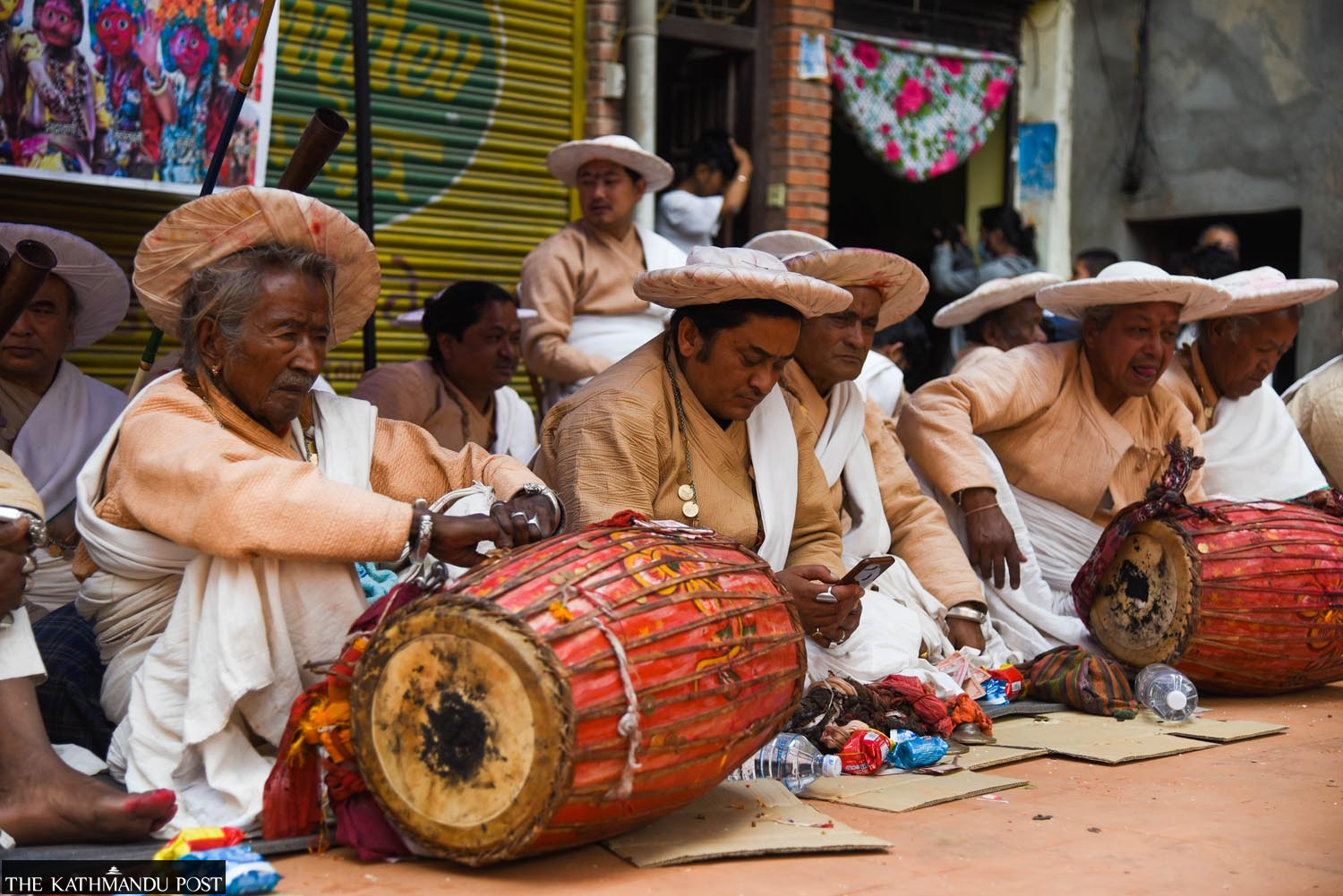 A cultural troupe takes a break during the once-in-12-years Sikali Jatra at Lagan Tole, Kathmandu on Friday. Sukarya Lal Shrestha/TKP