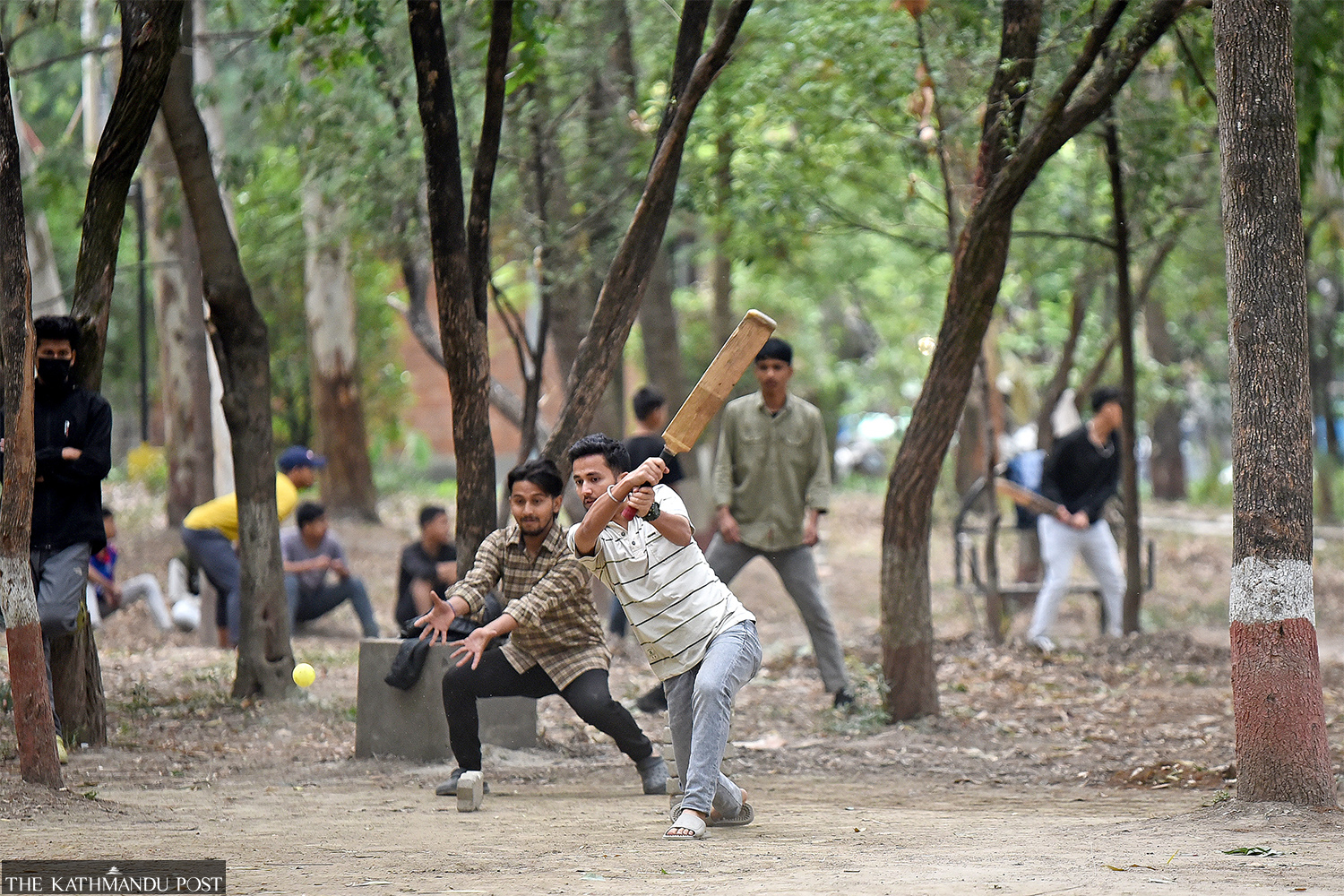Youths play cricket at the UN Park in Lalitpur on Thursday. Angad Dhakal/TKP