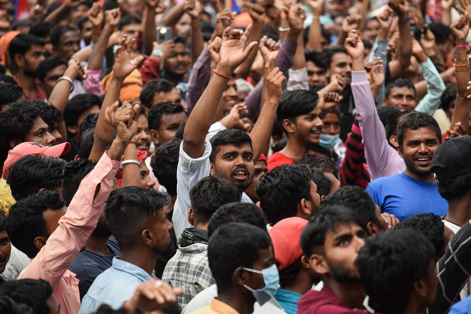 Scrap dealers protest against the Kathmandu Metropolitan City’s crackdown on their business in the Capital on Tuesday. After ordering the scrap collection centres to move outside the Ring Road, municipal authorities have bulldozed some such facilities in recent days. Safal Prakash Shrestha/ TKP
