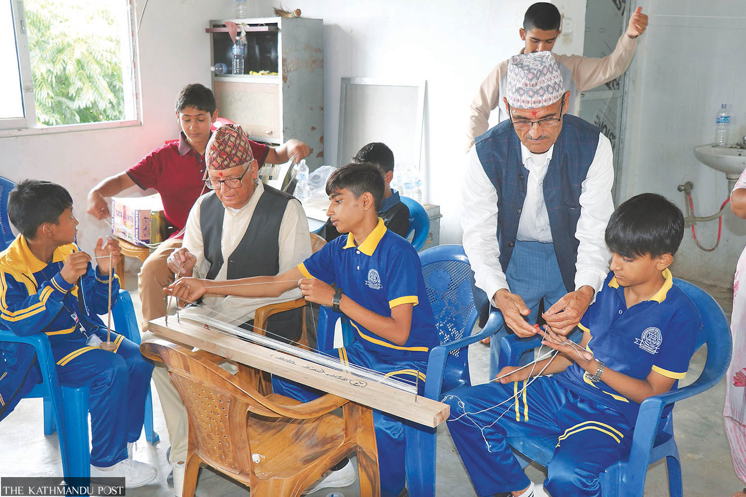 Boys and the elderly spin cotton thread to make janai, the sacred thread, at Mehaldhara in Palpa recently. Hindus are celebrating the Janai Purnima festival across the country on Monday. Madhav Aryal/TKP