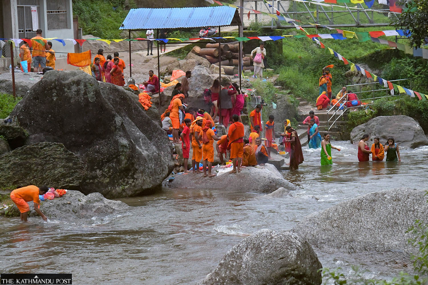 Devotees taking part in the Bolbom pilgrimage flocked to the clear stretches of the Bagmati River at Sundarijal, northeast of Kathmandu, for a ritual dip, on the last Monday of the holy month of Shrawan. They carry the water from the river to offer at various Shiva shrines. Deepak KC/TKP