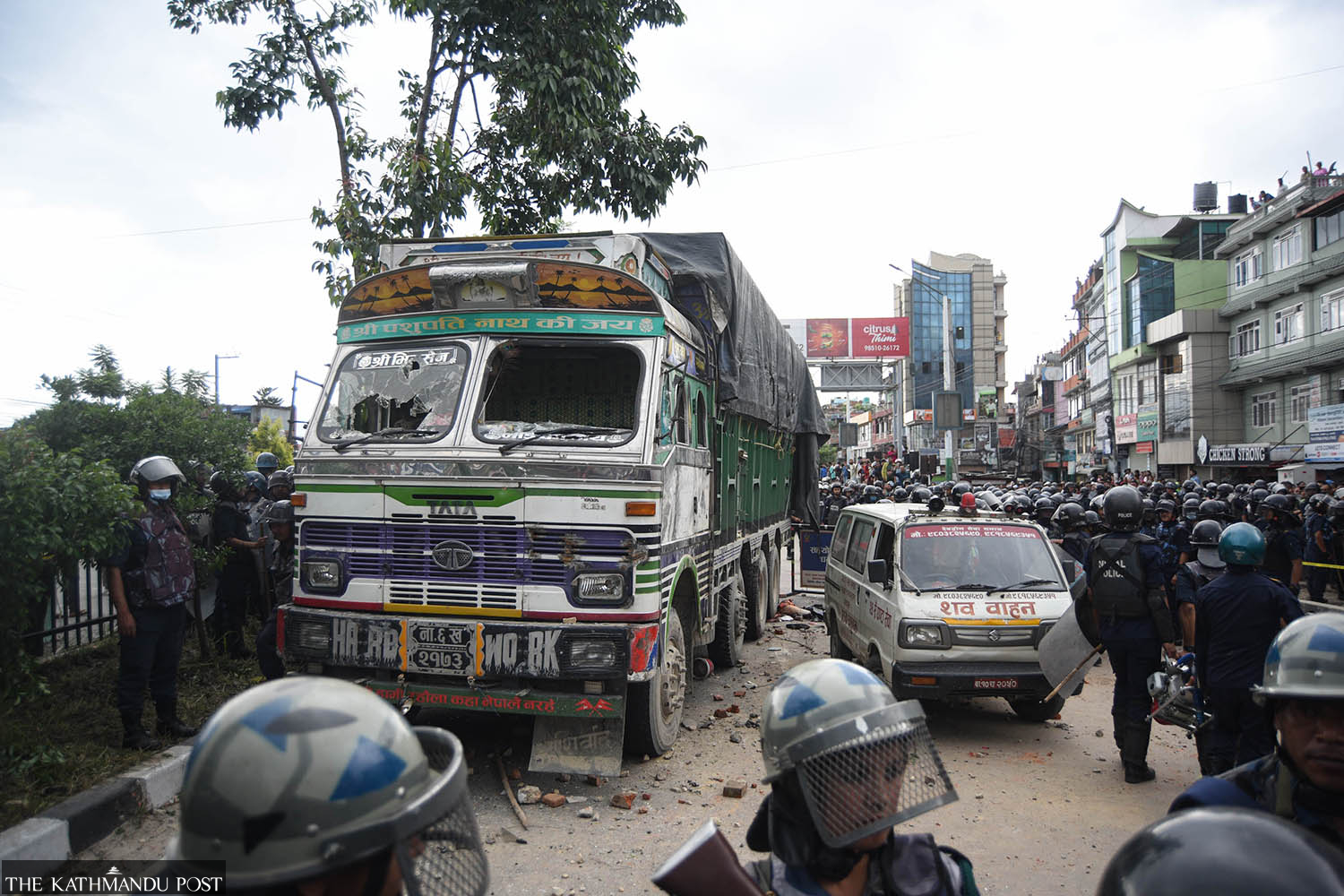 A scene at Gatthaghar in Bhaktapur on Thursday afternoon following the death of a scooter rider who was hit by a truck. Safal Prakash Shrestha/ TKP