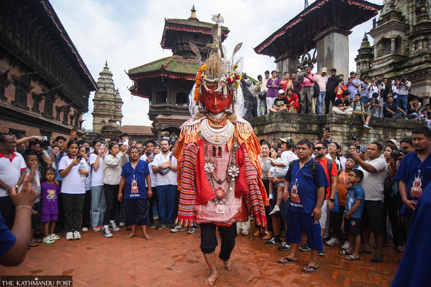 Devotees parade an idol of the Dipankar Buddha through Bhaktapur as part of the Pancha Dan festival on Saturday. During this festival, known for the tradition of five summer gifts, participants donate five essentials—unhusked paddy, rice grains, pulses, salt, and money—as offerings for their well-being. Safal Prakash Shrestha/TKP