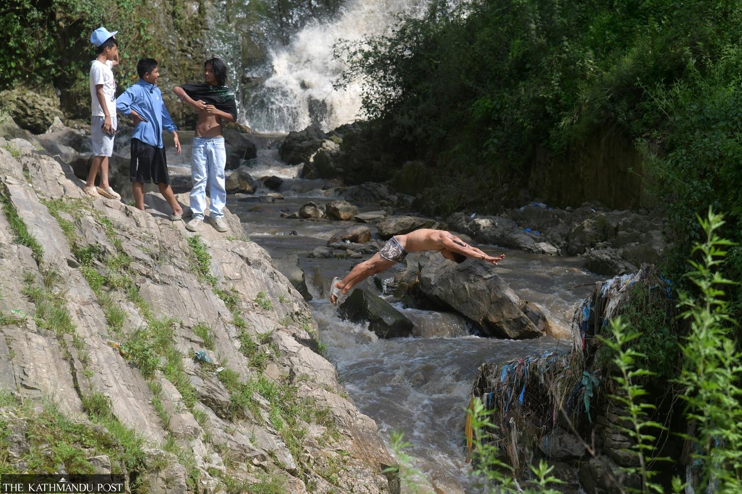 Young boys play at a stream in Jharuwarashi of Lalitpur in this recent picture. Deepak KC/TKP