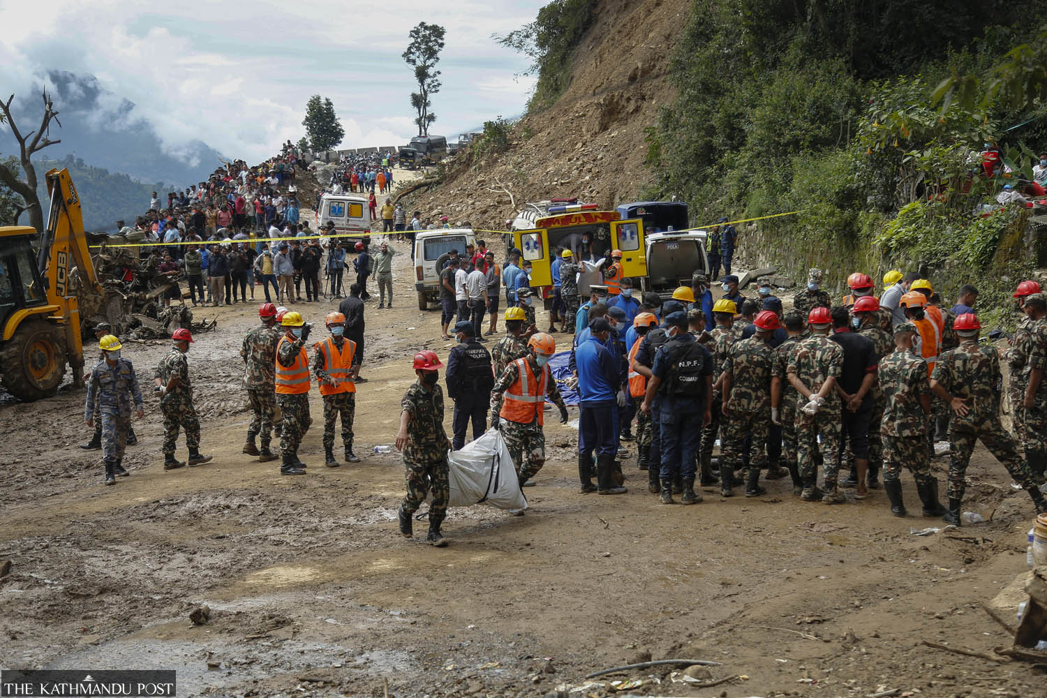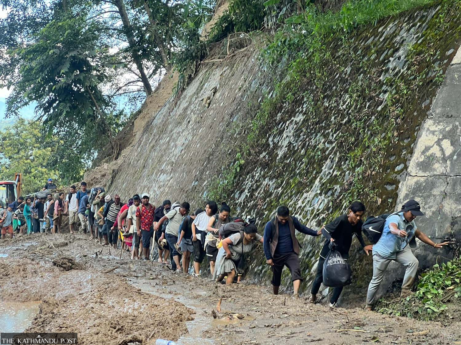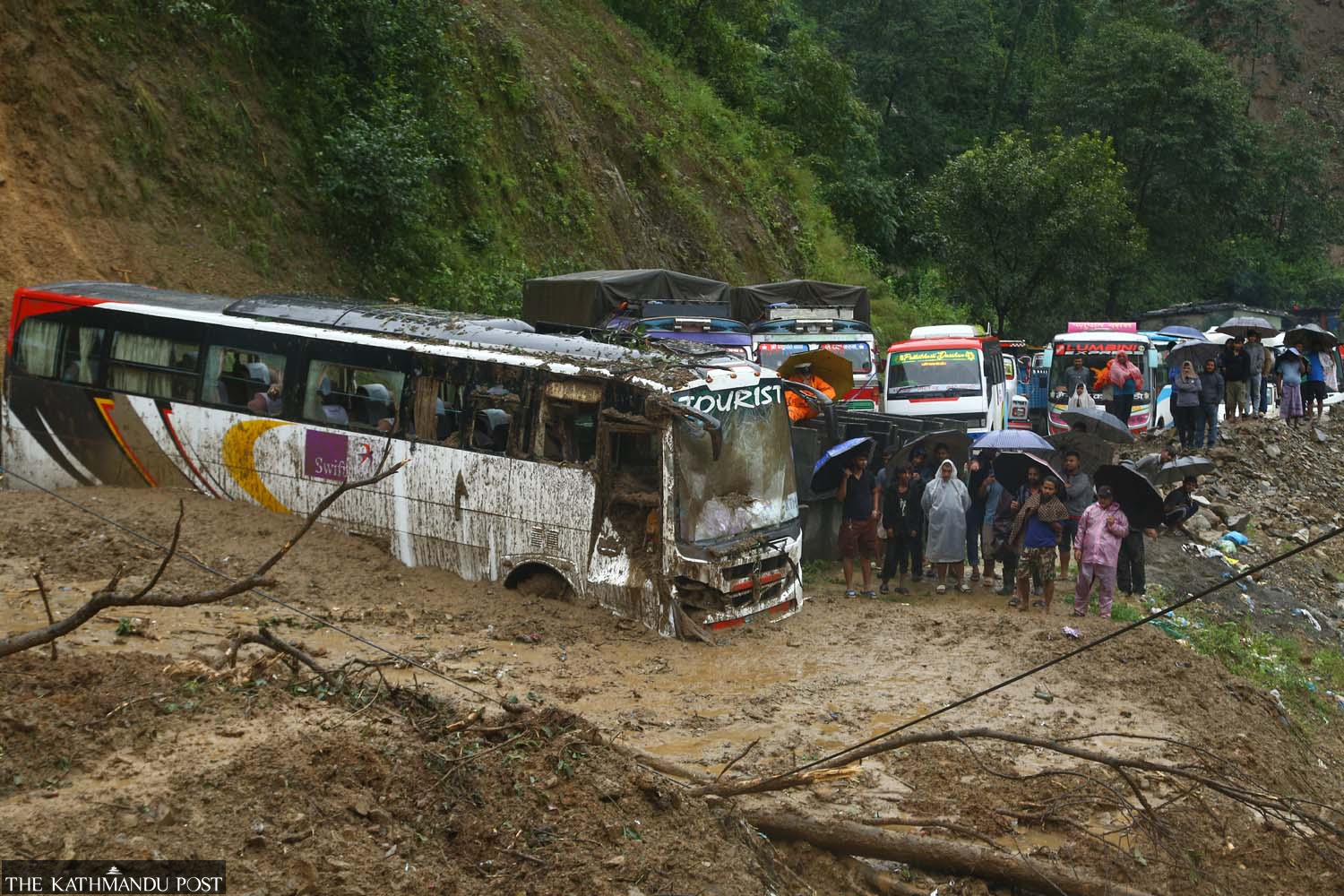 Vehicles are stuck and passengers stranded by a landslide at Jhyaple Khola in Dhading on Saturday. Prakash Chandra Timilsena/TKP Police retrieve bodies of passengers a day after a landslide struck vehicles at Jhyaplekhola on the Tribhuvan Highway in Dhading. The number of victims of the incident reached 35 on Sunday. Prakash Chandra Timilsena/TKPA villager blows a cow horn to welcome visitors entering Yaoshan ancient village in Guizhou. Prakash Chandra Timilsena/TKPPeople are spotted amid the ruins of houses where the Roshi river now flows, in Kalanti of Panauti, in this photo taken on Tuesday. Jyoti Shrestha/TKPA queue of vehicles stuck on a landslide-hit Dhading-Kathmandu stretch of the Prithvi Highway in this photo taken on Sunday. Prakash Chandra Timilsena/TKP Houses in Harmony Colony in Lalitpur ward 18 are swamped in the aftermath of a flood on the Nakkhu Khola, at Nakkhu on Wednesday. Deepak KC/TKP Ason in Kathmandu is crowded with shoppers on Ghatasthapana, the first day of the two-week-long Dashain festival, on Thursday. Safal Prakash Shrestha/TKPTrash brought by floodwaters remains stuck on tree branches on the Bagmati riverbank at Teku, Kathmandu in this photo taken on Friday. Angad Dhakal/TKP People working as seasonal migrants in several states of India enter Nepal from the Nepalgunj border to celebrate Dashain in this recent photo. Hemanta Shrestha/TKPRaj Kumar Karki/TKPStranded travelers on the BP Highway trudge through a muddy stretch at Belagaun in Kavrepalanchok district on Monday. After the highway was badly damaged in many places by heavy rains on Friday and Saturday, they were left with no alternative but to risk their lives walking through treacherous routes. Jyoti Shrestha/TKPSafal Prakash Shrestha/TKP