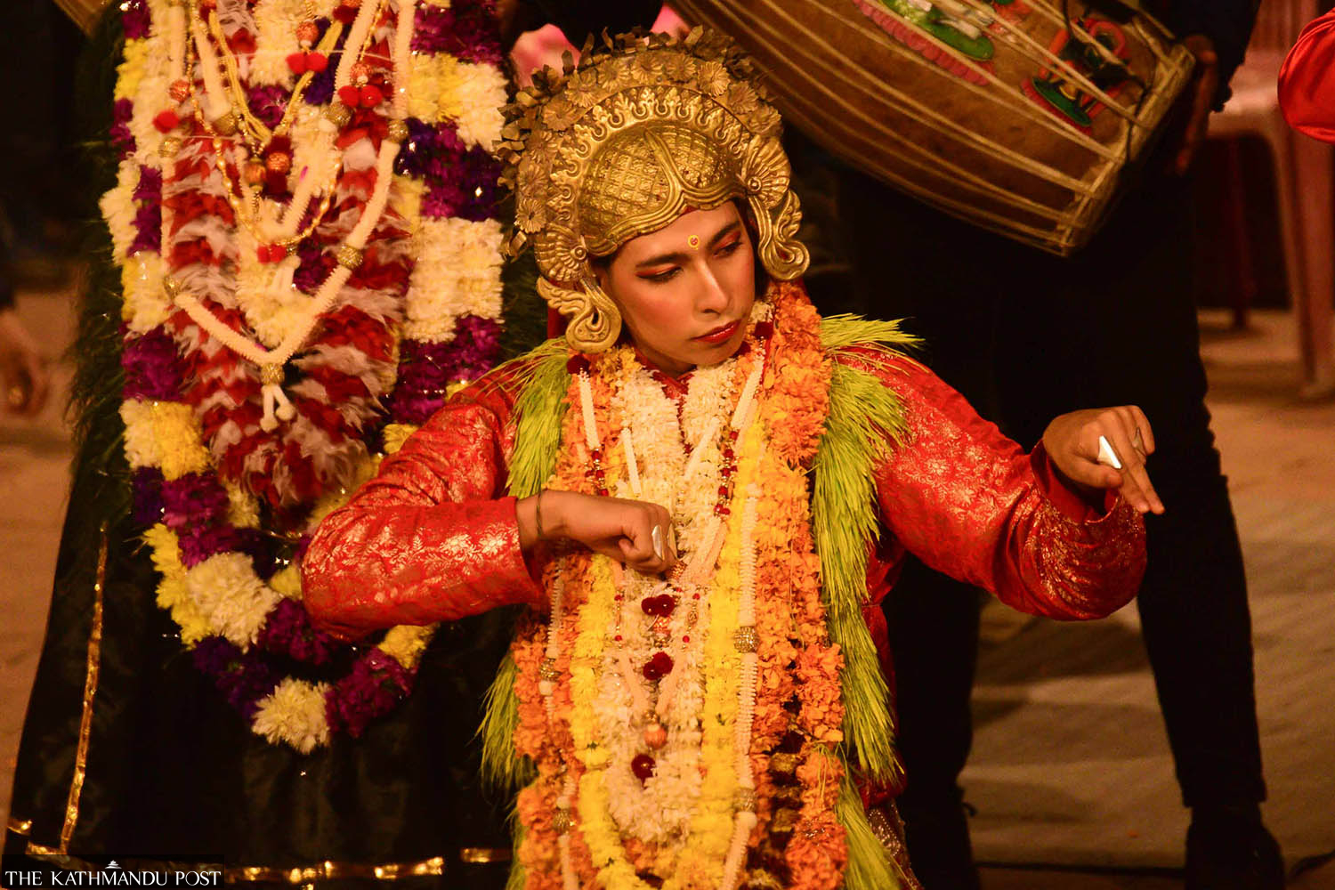 Narsingh dance performed as a part of Kartik Naach in Patan, Lalitpur, on Thursday night. A dramatic portrayal rooted in Hindu mythology, the dance tells the story of Narasimha avatar, one of Vishnu’s ten incarnations in which the lord takes the form of a half-man, half-lion to slay the demon Hiranyakashipu. The dance symbolising the victory of good over evil involves elaborate costumes and highly dynamic movements. Safal Prakash Shrestha