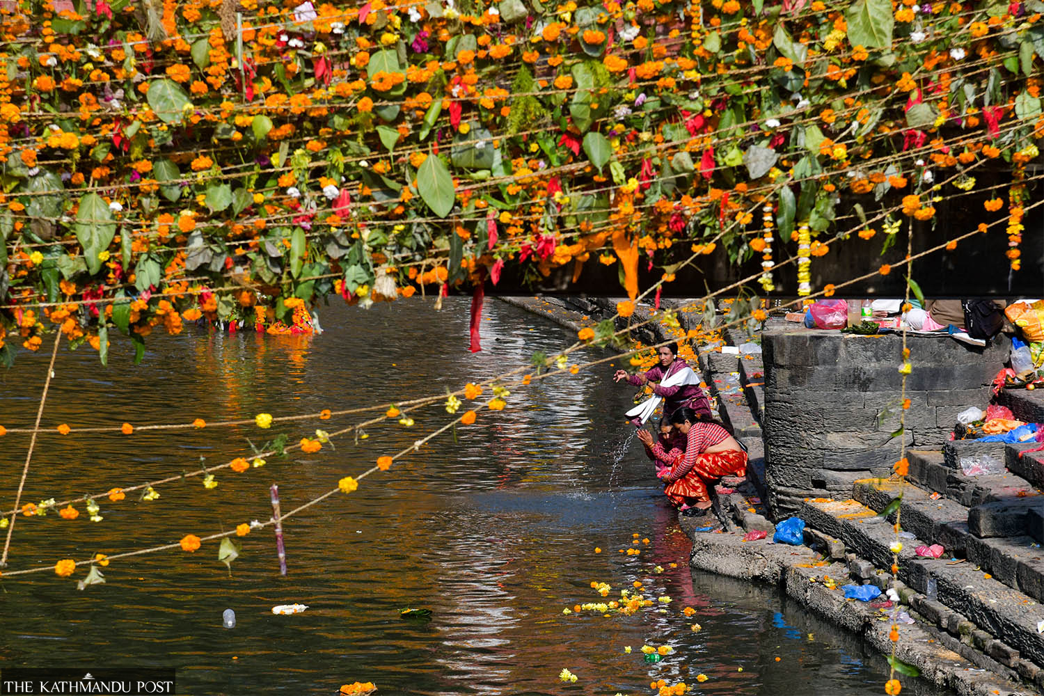 Devotees offer prayers on the Bagmati riverbank at Pashupatinath Temple in Kathmandu on the occasion of Haribodhini Ekadashi on Tuesday. Deepak KC/TKP