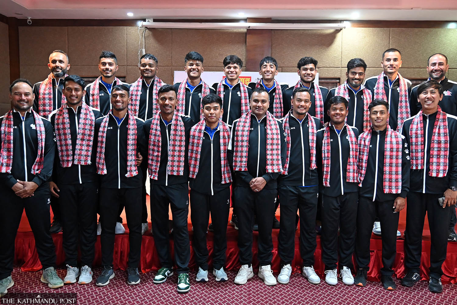 Players and officials of Nepal national U-19 men’s cricket team pose for a group photo in Kathmandu before leaving for the United Arab Emirates to participate in ACC U-19 Asia Cup, which is set to take place from November 29 to December 8. Nepal begin their Asia Cup against Sri Lanka in Dubai on Friday. Nepal play their next group match against Bangladesh on December 1 and Afghanistan on December 3. Angad Dhakal/TKP