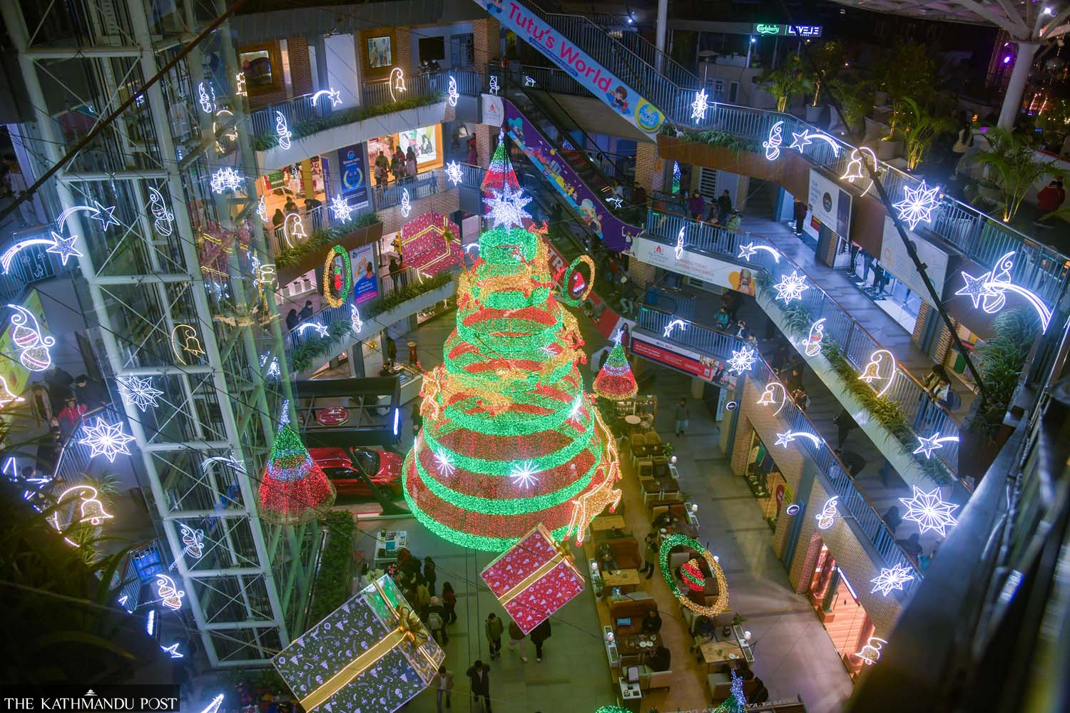 Labim Mall in Lalitpur is lit up on Christmas Eve on Tuesday. Deepak KC/TKP