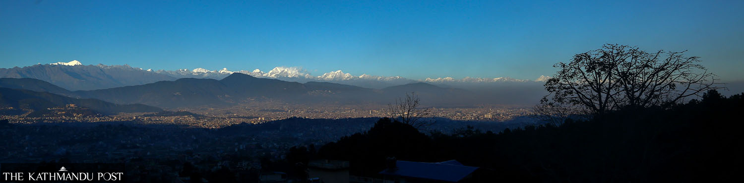 A panoramic view of the Himalayan mountains, spanning from the Langtang range on the left to Gaurishankar on the far right, captured from Kirtipur, Kathmandu, on Friday. Prakash Chandra Timilsena/TKP