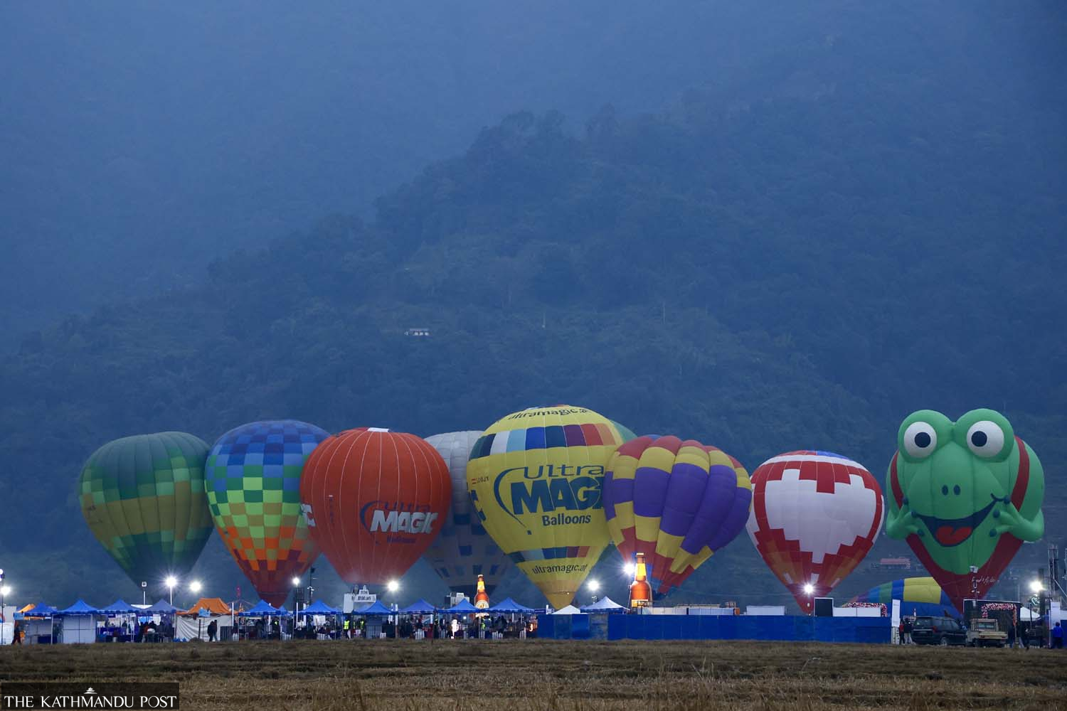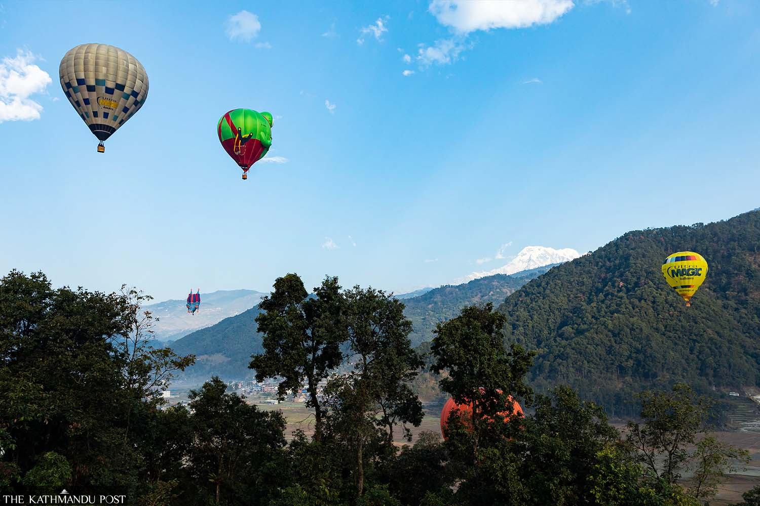 Hot air balloons fly over Pame on the second day of the International Balloon Festival in Pokhara on Wednesday. The festival runs until January 1. Hemanta Shrestha/TKP