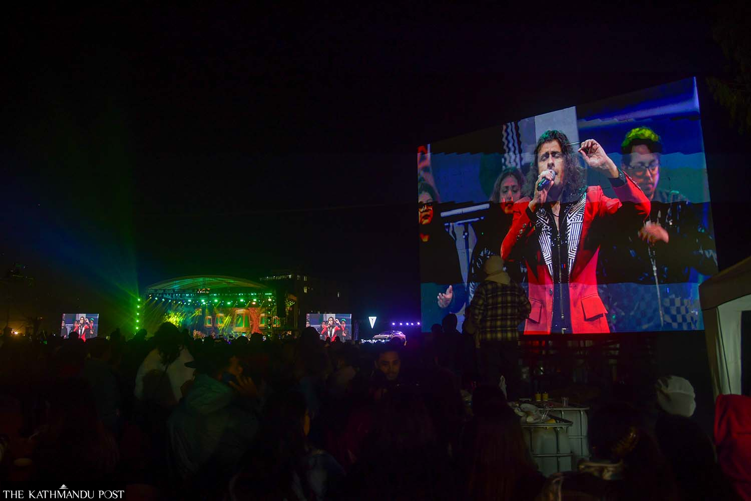 Indian playback singer Sonu Nigam performs during a concert at the Hyatt ground in Kathmandu on Wednesday. The show was organised by Nepali Touch-Nepal and marked Nigam’s first live performance in Nepal, drawing in thousands of fans. Deepak KC/TKP