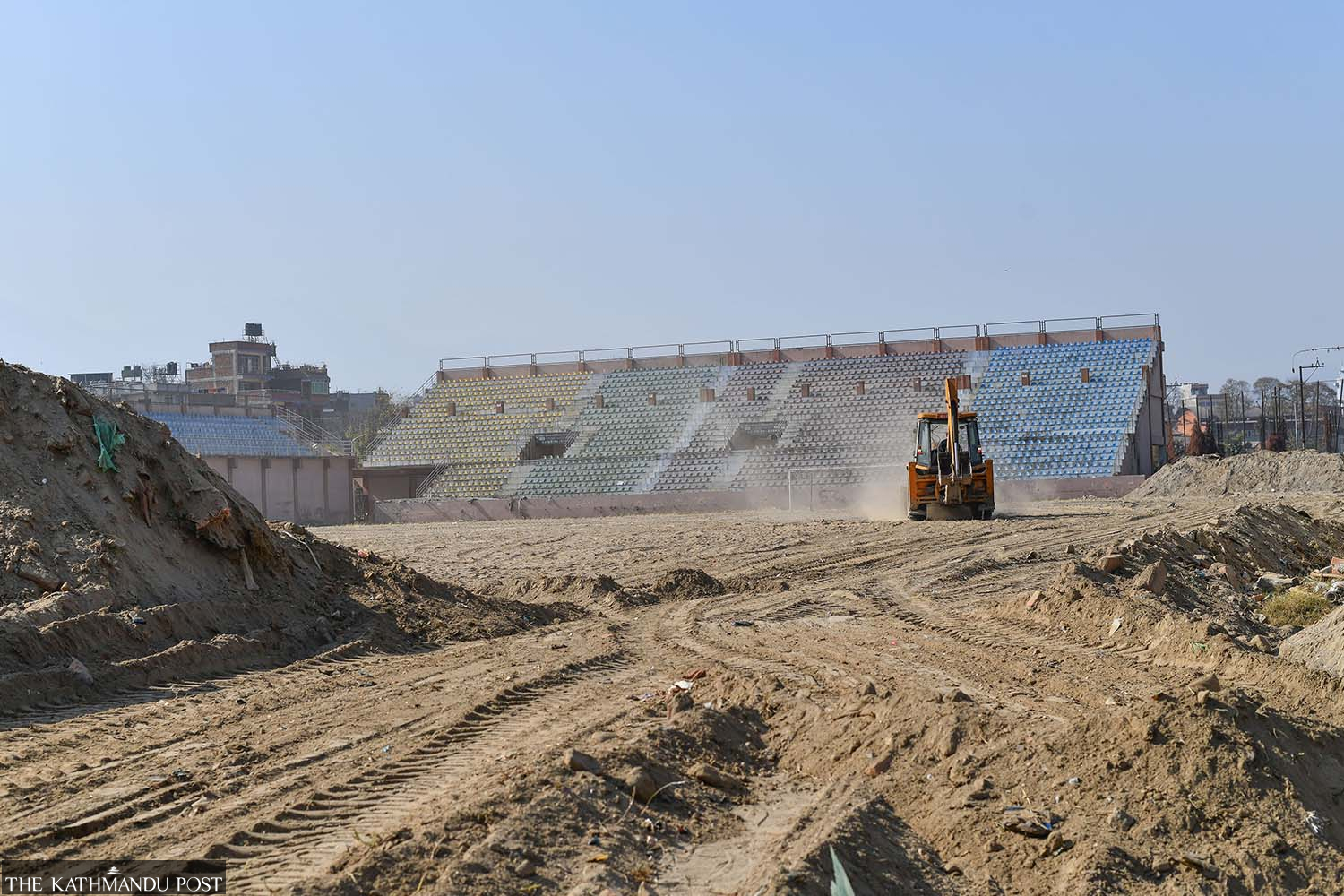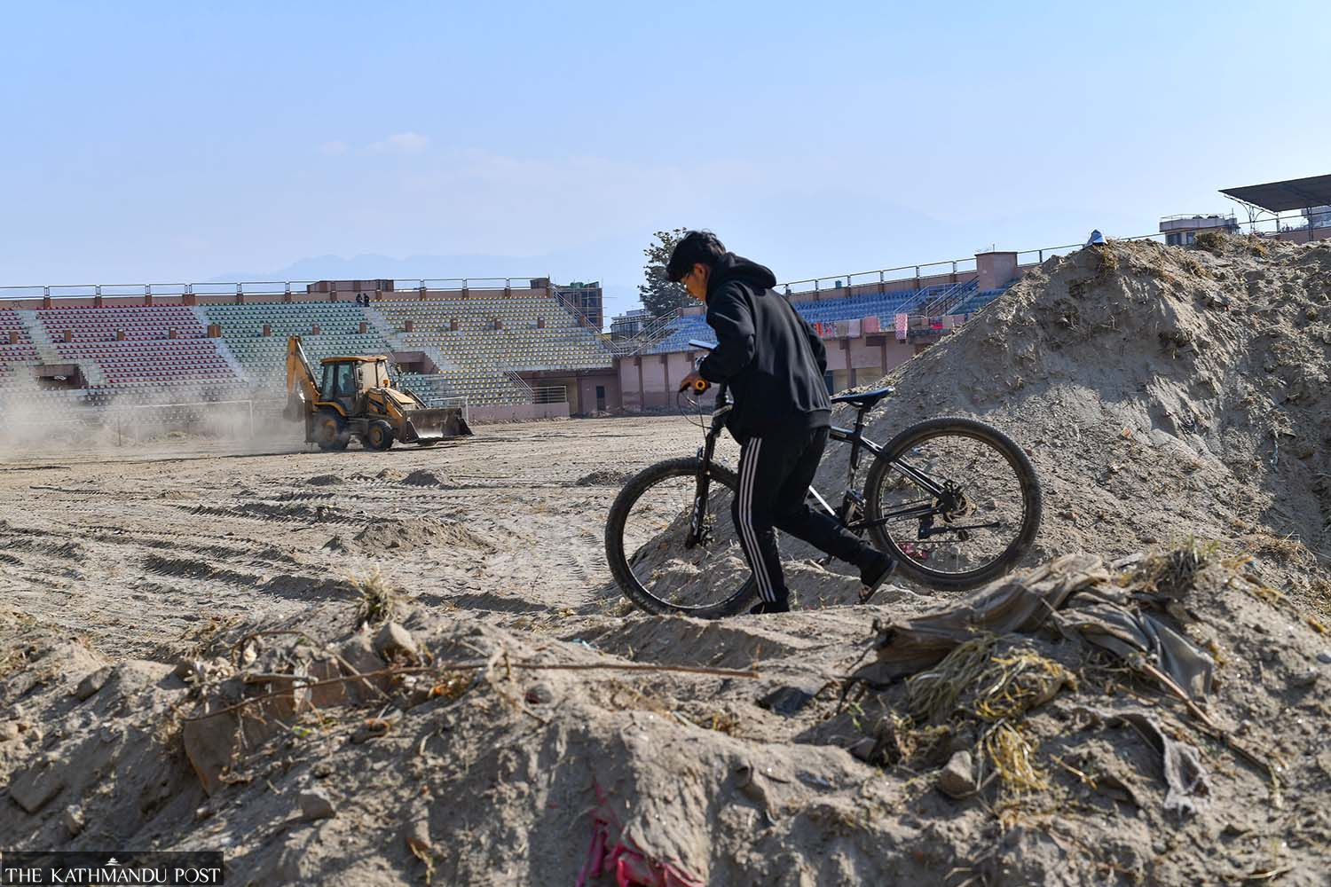 The Chyasal football stadium in Lalitpur remains in disrepair months after flash floods triggered by late-September rains. Once a vibrant hub for sports, the ground is now buried under layers of sand and mud, rendering it unfit for games.