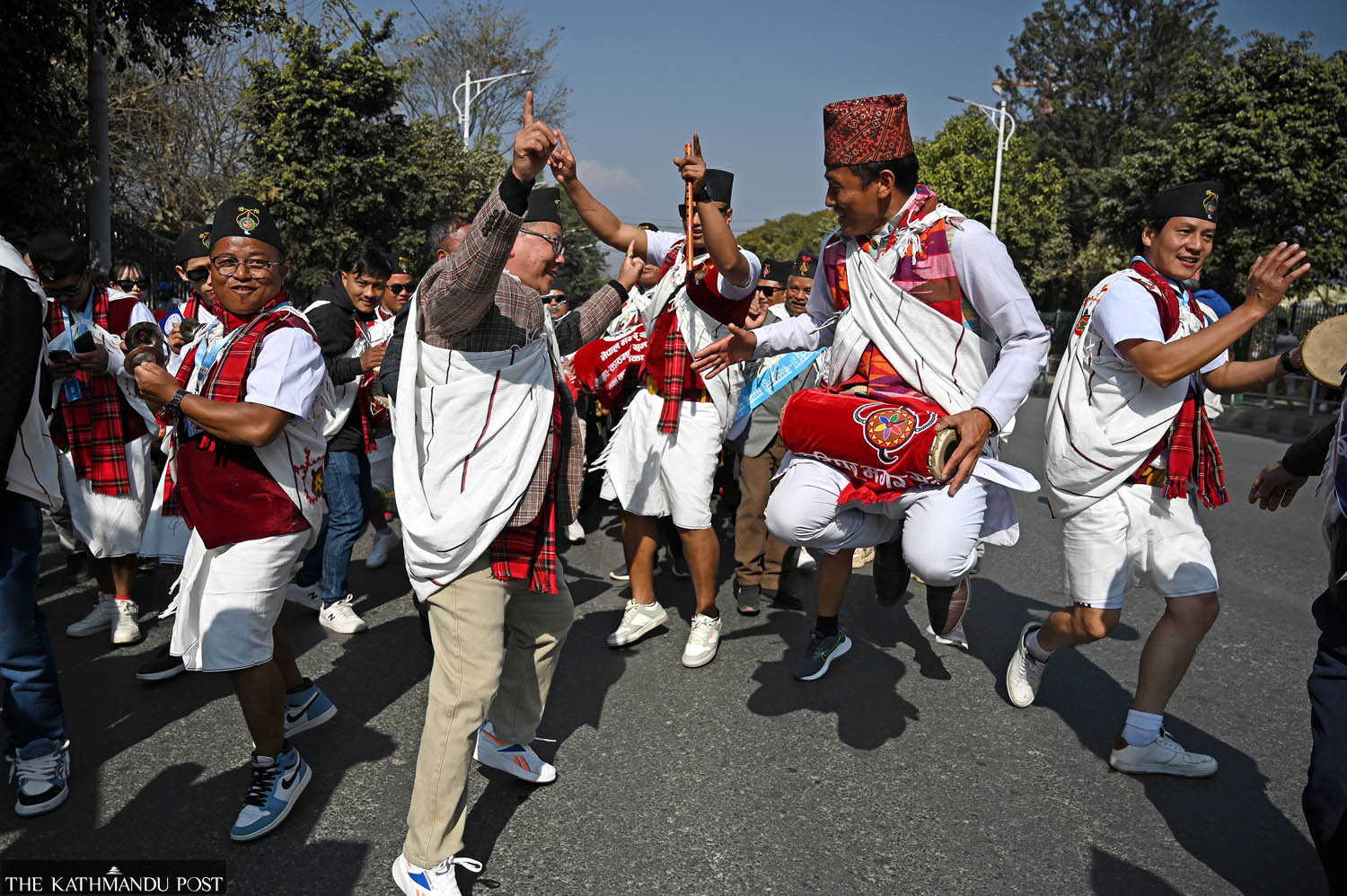 Members of the Magar community proceed to Tundikhel for a Maghe Sankranti function in Kathmandu on Tuesday. Angad Dhakal/TKP