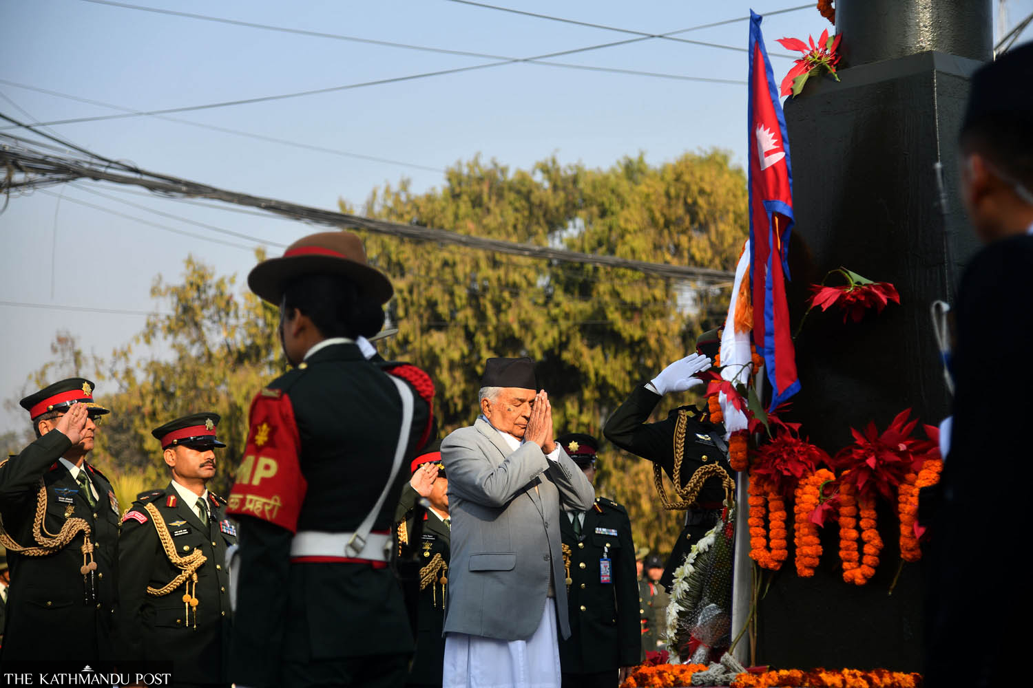 President Ramchandra Paudel pays respects to King Prithvi Narayan Shah on the occasion of Prithvi Jayanti at a function in Singha Durbar, Kathmandu on Saturday Deepak KC/TKP