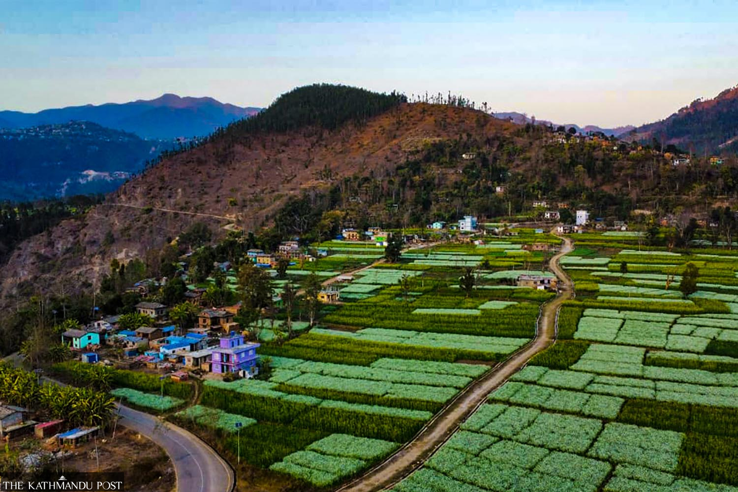 Farms of Syalakhol at Chaurjahari Municipality in Rukum West look lush green with radish saplings in this photo taken on Monday. For a lack of irrigation, many farmers in the local unit have abandoned traditional wheat farming and switched to more profitable radish seeds production. Post Photo