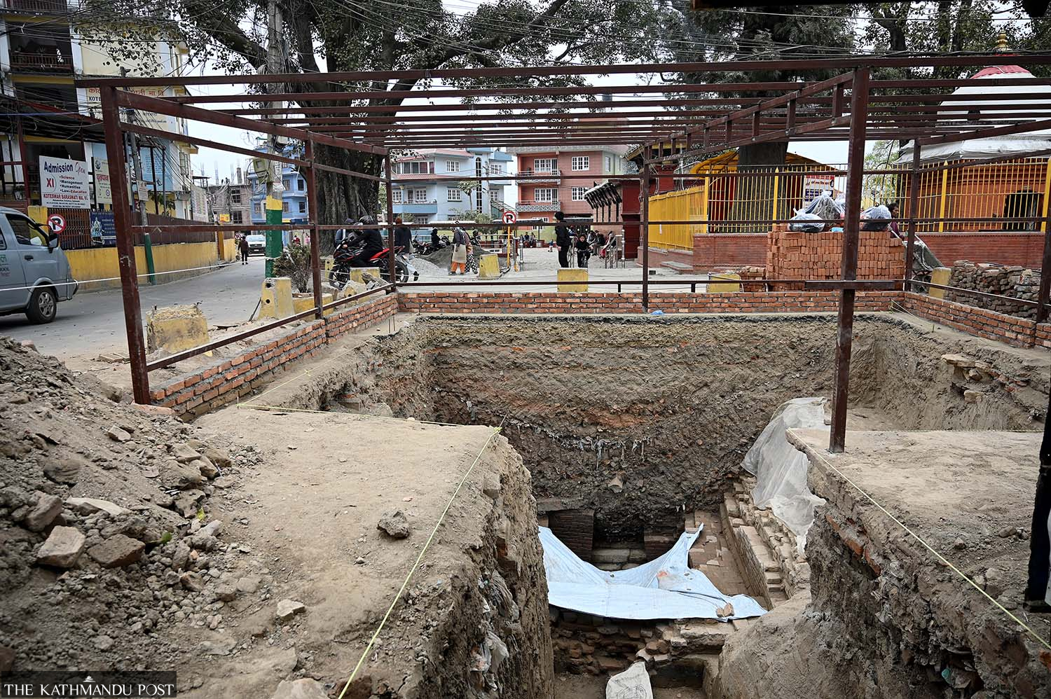 An 18th-century stone spout and bath (20 ft by 22 ft) have been uncovered on the premises of Koteshwar Mahadevasthan temple in Kathmandu. The Kathmandu Metropolitan City (KMC) began the excavation in January after some local residents spoke of the buried spout, just as plans were underway for a community hall. Now KMC plans to restore the spout. Angad Dhakal/TKP
