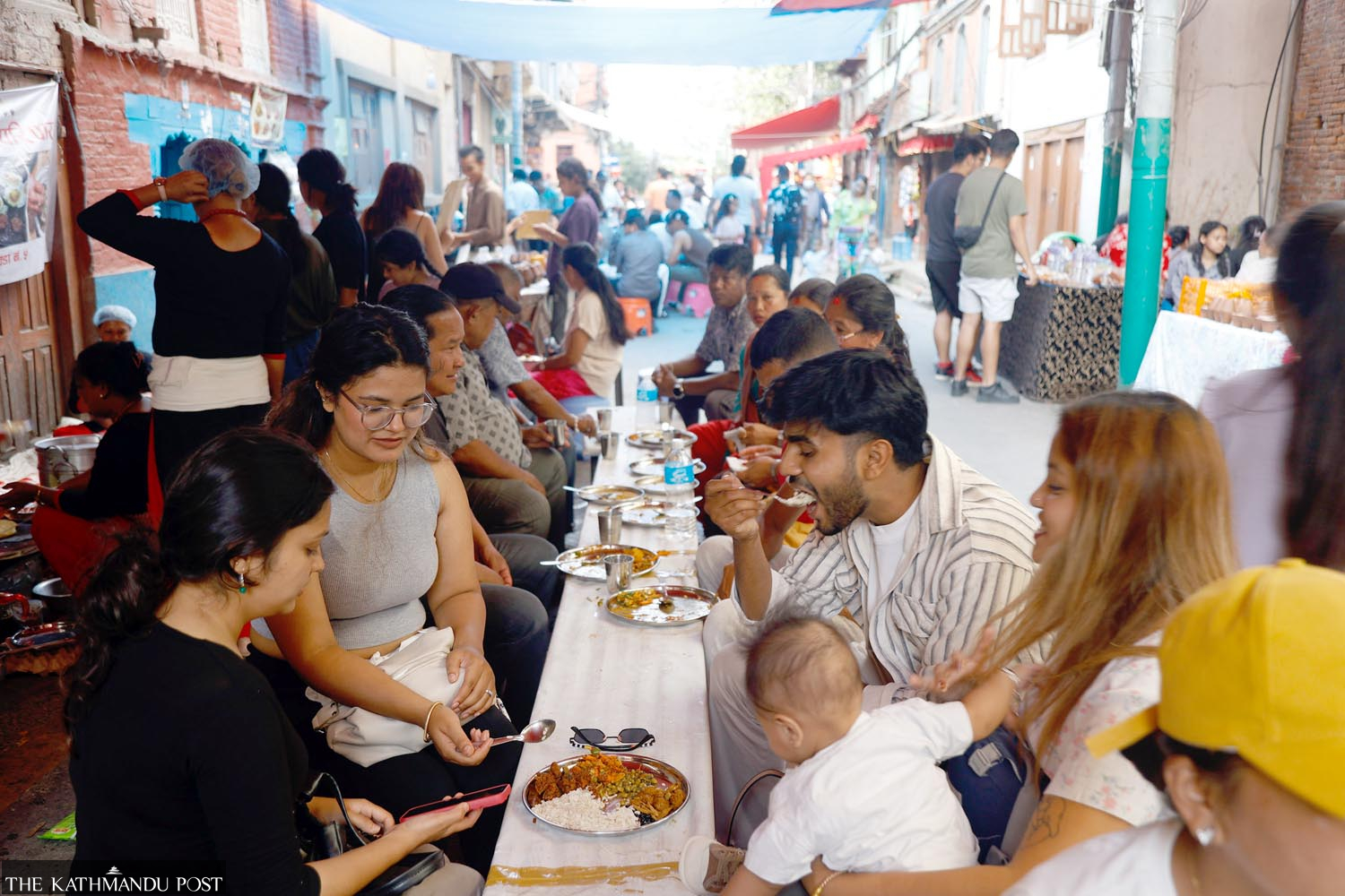 People enjoy Newari cuisine at the Handigaun Festival in Kathmandu on Saturday. Suryams Upreti/TKP