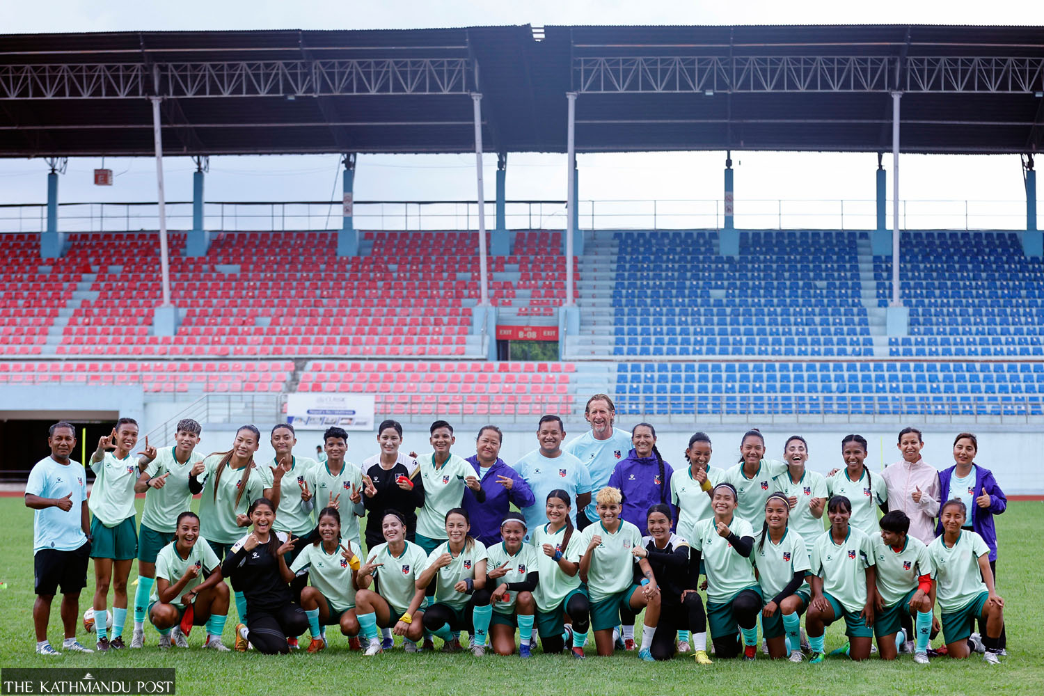 Nepal’s national women’s football team members pictured during a training session at Dasharath Stadium on Wednesday. The session was part of their final preparations for the upcoming AFC Women’s Asian Cup 2026 qualifiers. Hemanta Shrestha/TKP
