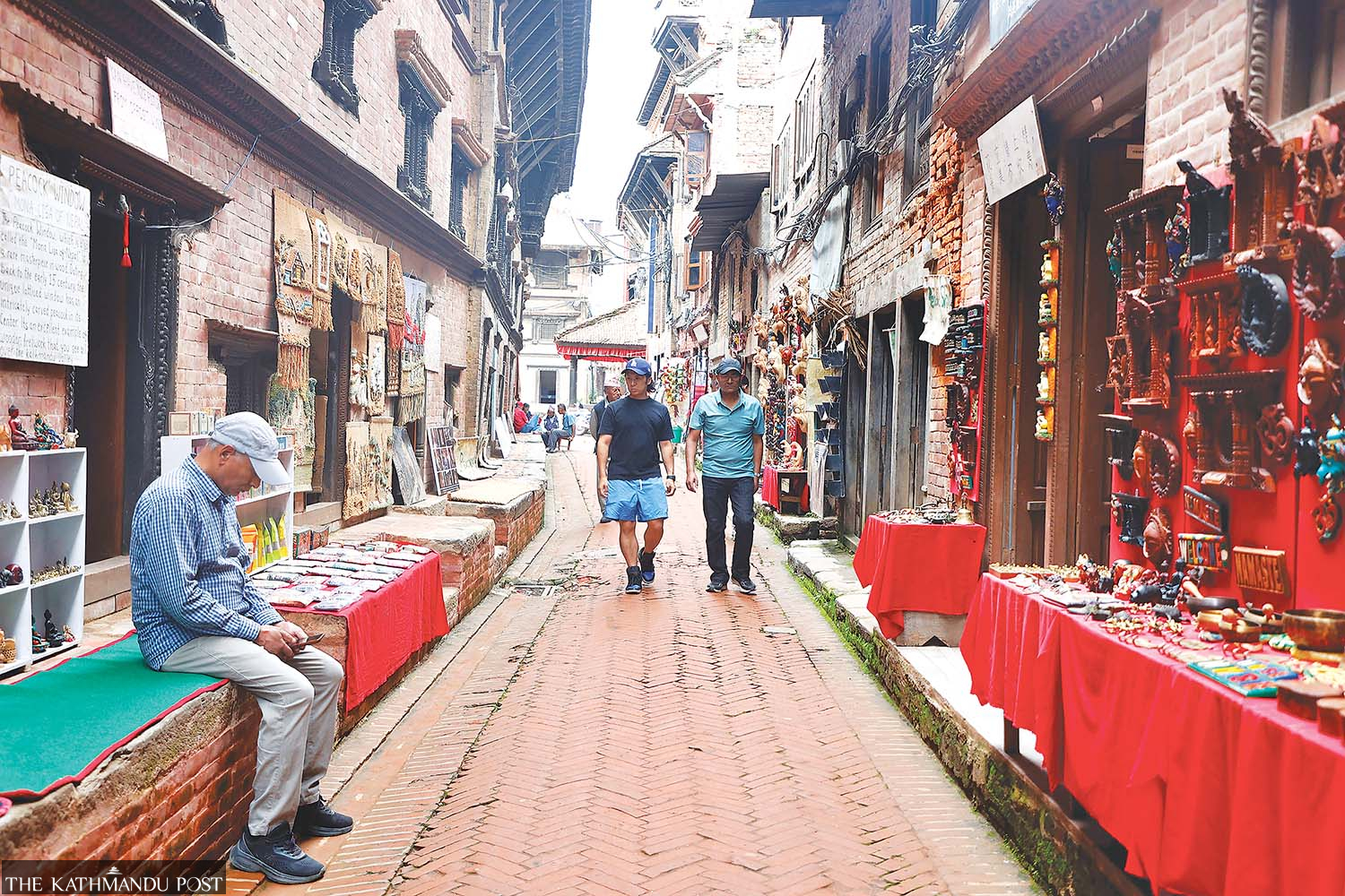 A handicrafts vendor waits for customers in Dattatreya, Bhaktapur earlier this week. Hemanta Shrestha/TKP