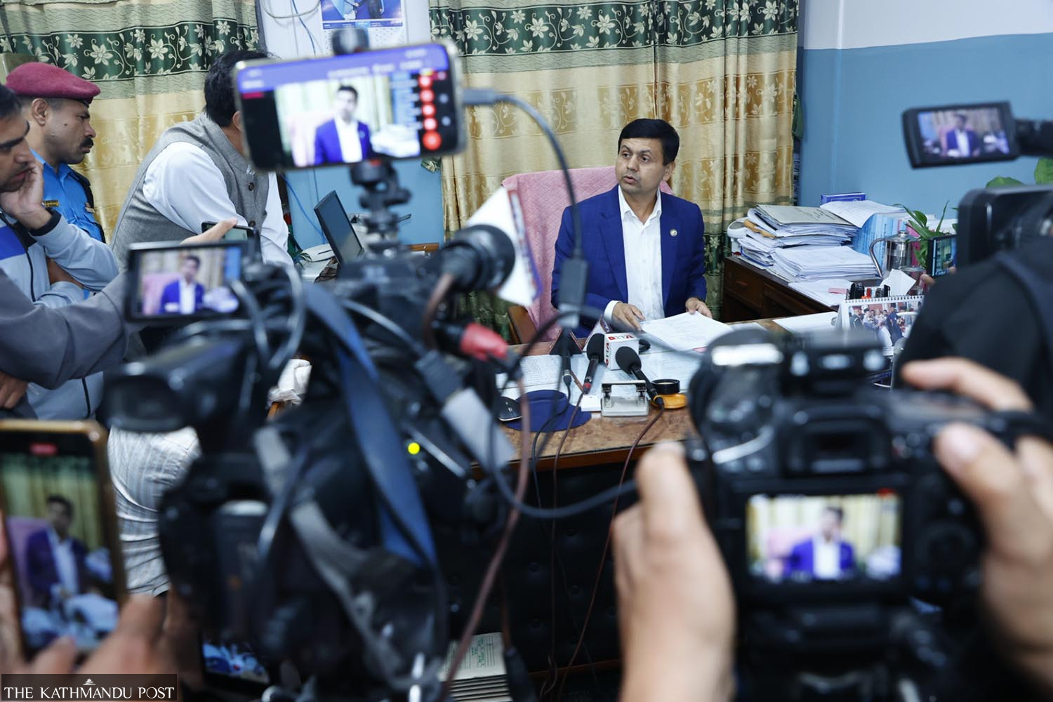 Supreme Court Joint-registrar Achyut Kuikel briefs the media on the Constitutional Bench’s decision on Wednesday midnight. Hemanta Shrestha/TKP