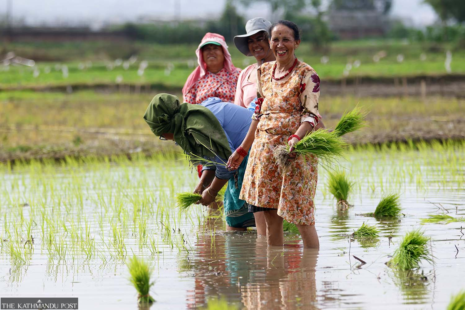 Rice transplantation underway at the Nepal Agriculture Research Council in Khumaltar, Lalitpur, on Sunday. As planting gets a boost with monsoon rains, Nepal marks Asar 15 as National Paddy Day to celebrate the crop’s significance in ensuring food security Hemanta Shrestha/TKP