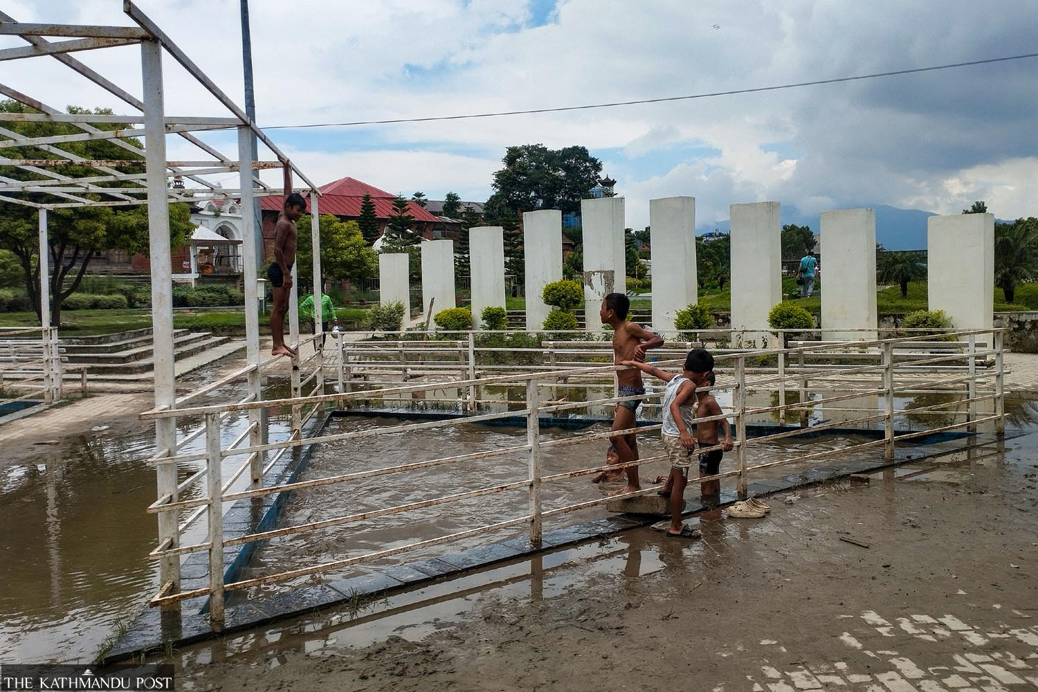 Children swim in a muddy pool filled with rainwater at Shankhamul Park in Lalitpur in this recent photo Deepak KC/TKP