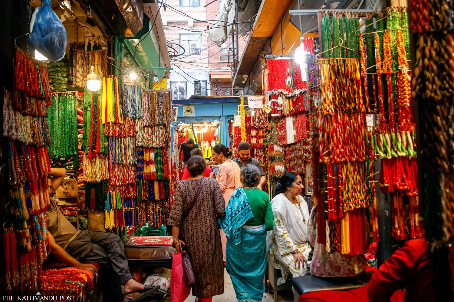 Indrachowk in downtown Kathmandu is abuzz with buyers as Teej, the festival of Nepali Hindu women, approaches, in this Monday photo. Suryams Upreti/TKP