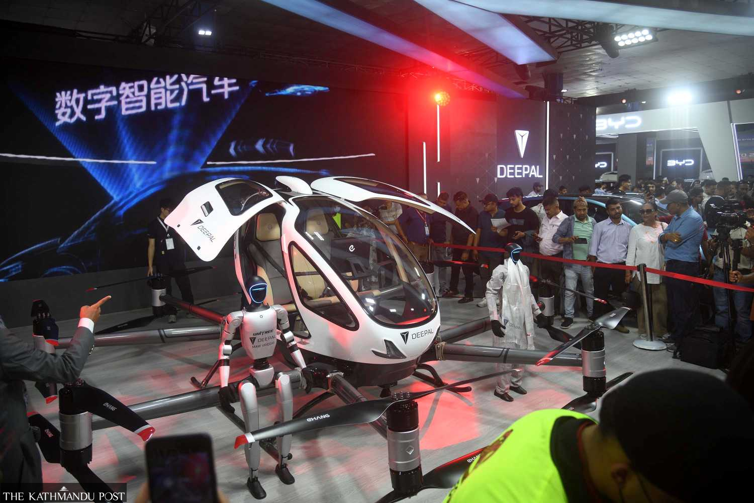 A flying car on display at the NADA auto show that got underway at Bhrikutimandap in Kathmandu on Tuesday. Deepak KC/TKP