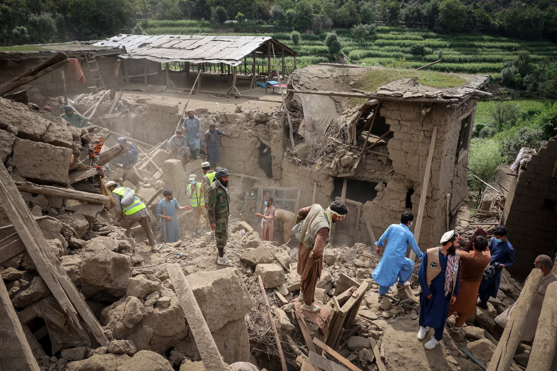 Rescue workers clear debris of a damaged house after a deadly magnitude-6 earthquake that struck Afghanistan, in Mazar Dara, Kunar province, Afghanistan, September 2. Reuters