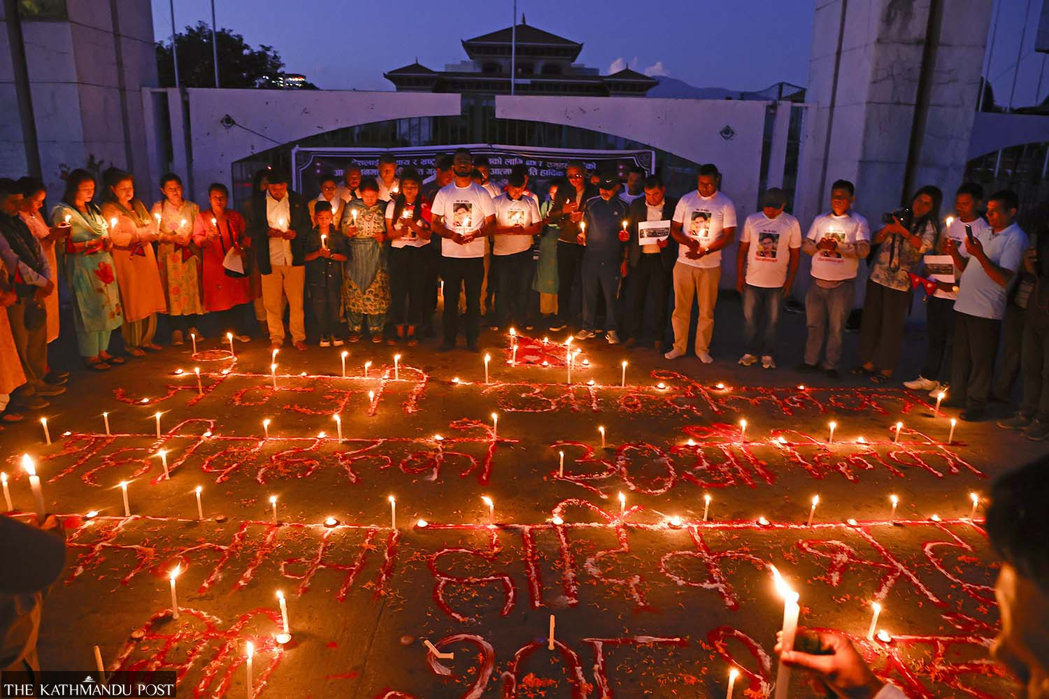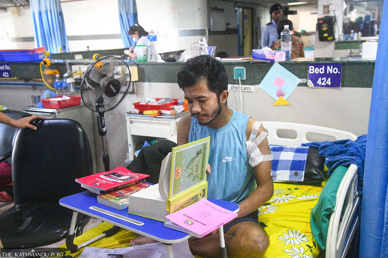 The structure of Bhatbhateni Supermarket in Naxal, Kathmandu, which was gutted during the arson of September 9, has collapsed following the heavy rains on Friday and Saturday as this picture taken on Monday shows. Angad Dhakal/TKPMadan Karki, a 25-year-old from Sindhupalchok who got shot in the chest during the youth protest on September 8, reads books as herecuperates at the National Trauma Centre in Kathmandu on Monday. Deepak KC/TKPA group identifying itself as Gen Z Movement Alliance talks to the media after submitting a memorandum at the Commission for Investigation of Abuse of Authority in Kathmandu on Tuesday. They have sought the resignation of CIAA chief Prem Kumar Rai and other commissioners. Dipen Shrestha/TKPA bird’s eye view of the Parliament Complex in Baneshwar, Kathmandu seen on Wednesday. Protesters had set the building on fire during the Gen Z uprising on September 8-9. Angad Dhakal/TKPRelatives and well-wishers of those killed in police firing during last month’s uprising hold a vigil in front of the Parliament complex in Kathmandu on Thursday. This New Baneshwar area was the epicentre of the September 8 Gen Z protest. Hemanta Shrestha/TKP People enrol for the upcoming elections at the Minbhawan office of the Election Commission in Kathmandu on Friday Dipen Shrestha/TKPWomen at Gundu, Bhaktapur make garlands of globe amaranth flowers on Thursday for Tihar festival. Flower garlands are essential for the festival. Deepak KC/TKPA local resident inspects a collapsed home at Barbote in Ilam of Koshi Province on Sunday. Post Photo
