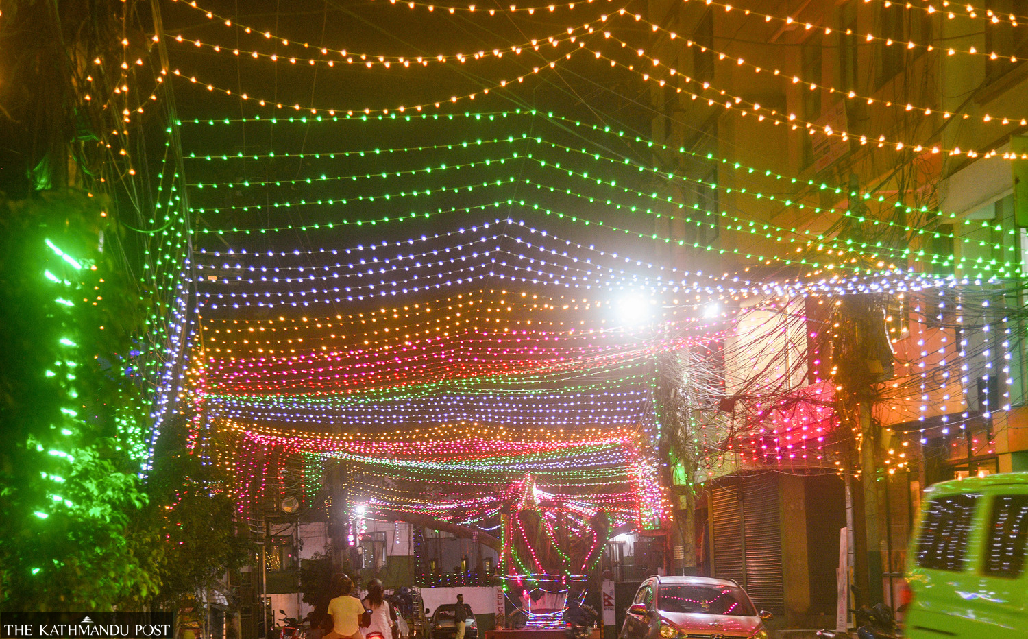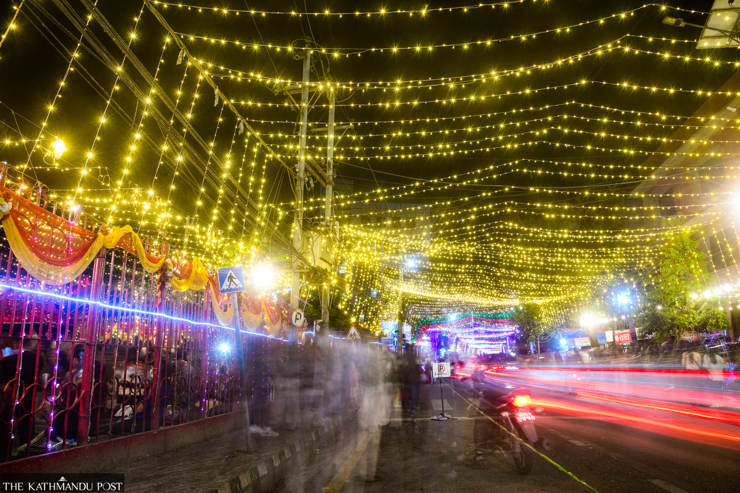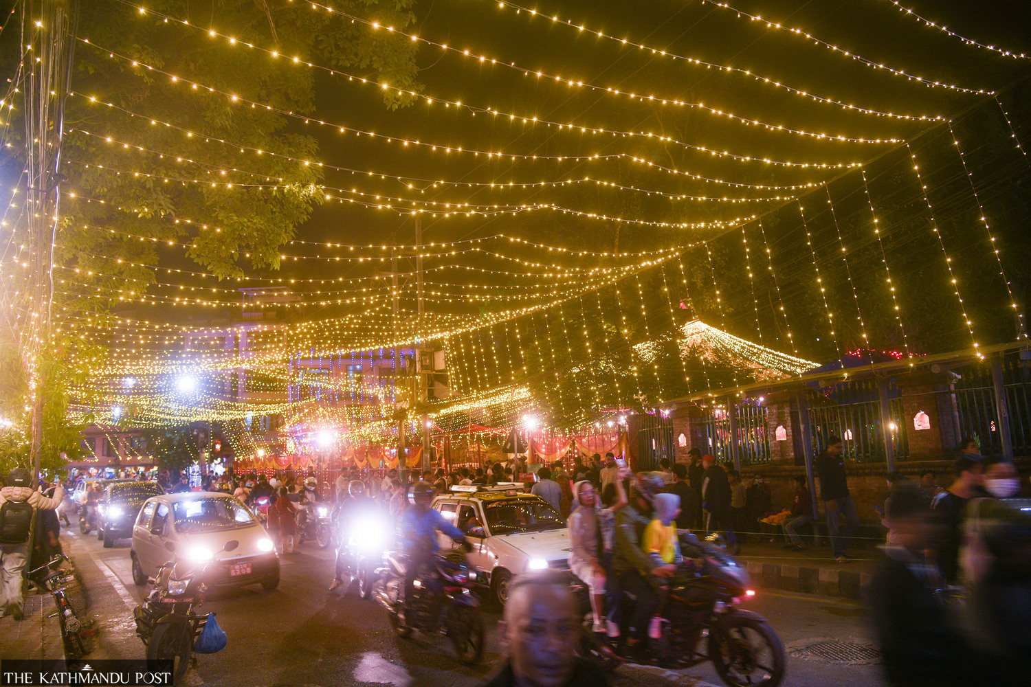 Known as the festival of lights, households across the city shone with vibrant decorations. Kathmandu, the Capital city, was adorned with colourful lights, creating a spectacular evening display.