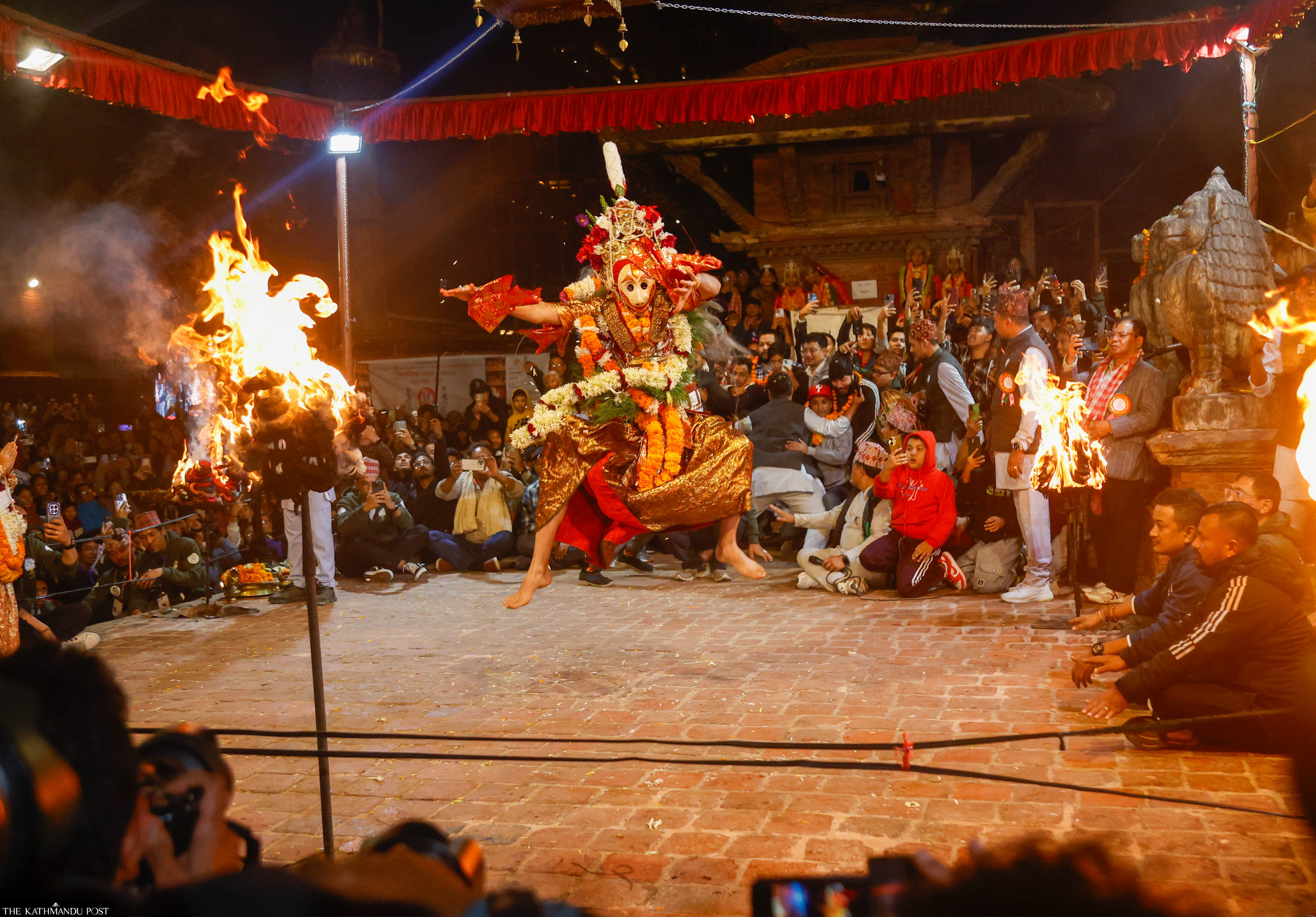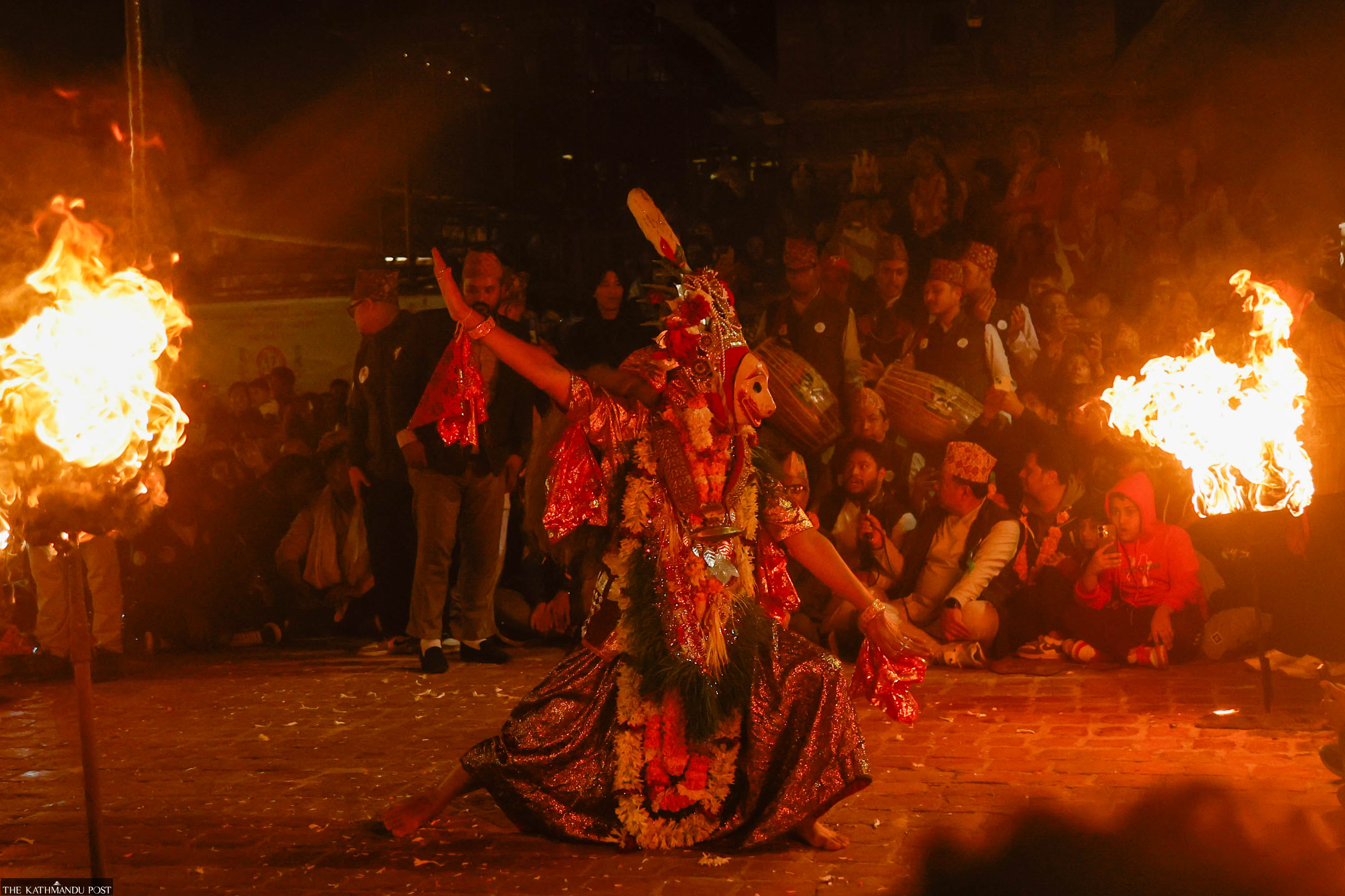 The Kartik Naach featuring Narsimha was performed on Monday night at Patan Durbar Square, captivating the crowd with its vibrant portrayal of ancient traditions.